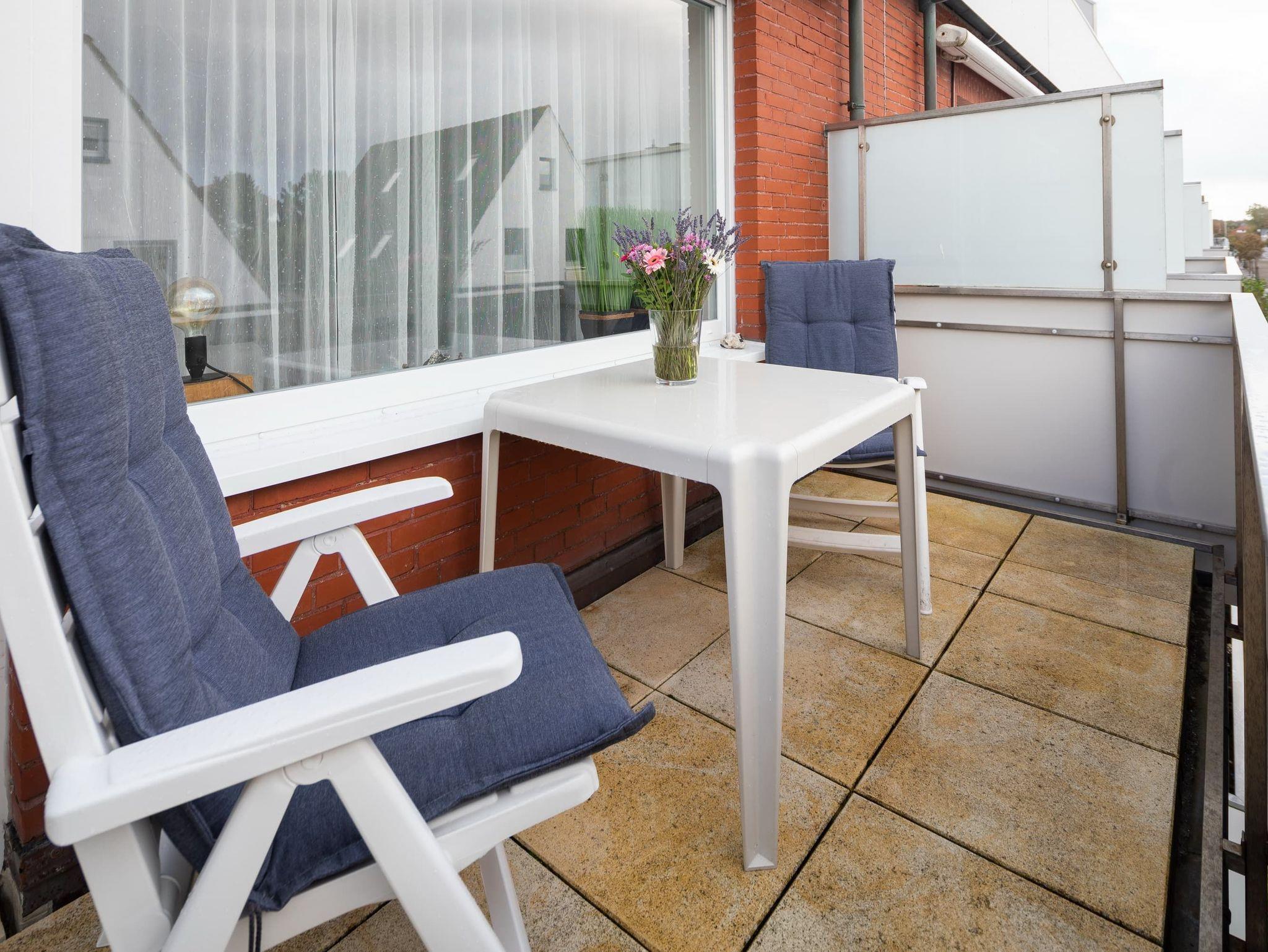 Moderne Ferienwohnung auf Norderney mit Balkon und Dünenblick, ideal für entspannte Urlaubstage am Meer.