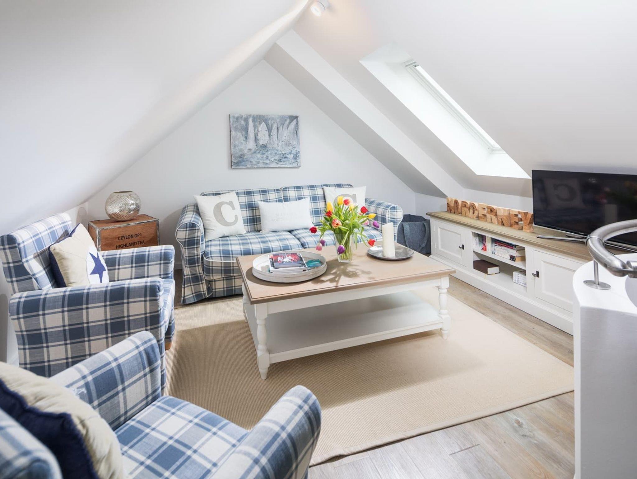 In der oberen Etage befindet sich das gemütliche Wohnzimmer mit Couch, 2 Sesseln [&] TV. [nbsp]Die Ferienwohnung ist mit Fussbodenheizung ausgestattet.