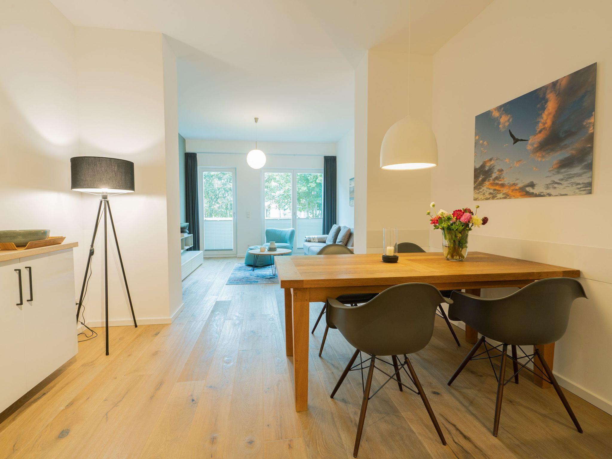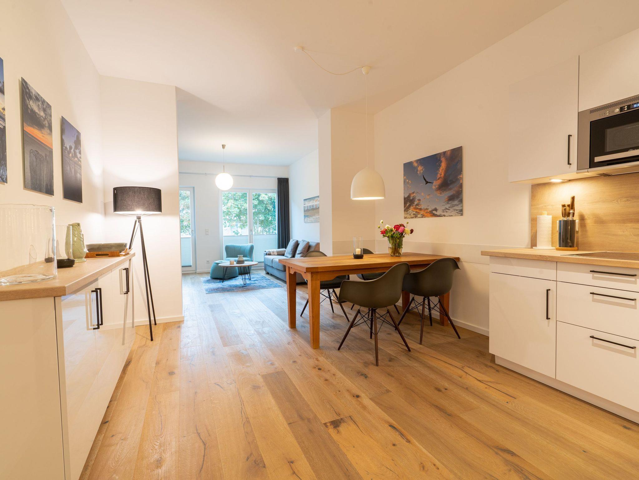 Modernes Apartment Wave_1 in der Villa Meeresrauschen nahe Strandpromenade auf Norderney mit Terrasse und hochwertiger Ausstattung.