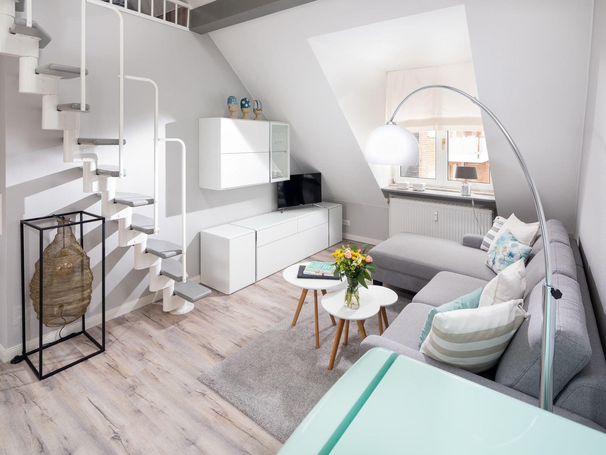 Die gemütliche Wohnung liegt in der Friedrichstraße, nur 50m von der Nordsee und der beliebten Milchbar entfernt und wurde Anfang 2020 saniert. Auf 42qm bietet sie Platz für bis zu 4 Personen. Im Wohnzimmer finden Sie neben der gemütlichen Couch auch einen Esstisch für 4 Personen und eine Küchenzeile. Über eine Platzspartreppe gelangen Sie ausserdem in das Highlight der Wohnung ? den gemütlichen Schlaf- oder Spielgiebel. Hier ist neben dem 1,40m breiten Bett Platz zum Entspannen oder Spielen. Das separate Schlafzimmer hat ein Doppelbett und reichlich Stauraum im Kleiderschrank. Auch dort finden Sie einen TV. Das Badezimmer ist weiß gefliest und hat eine Dusche. Perfekter Ausgangspunkt für einen Urlaub zu zweit oder eine kleine Familie. Die Wohnung ist beschränkt für die Nutzung von 3 Erwachsenen oder alternativ 2 Erwachsenen und 2 Kindern.