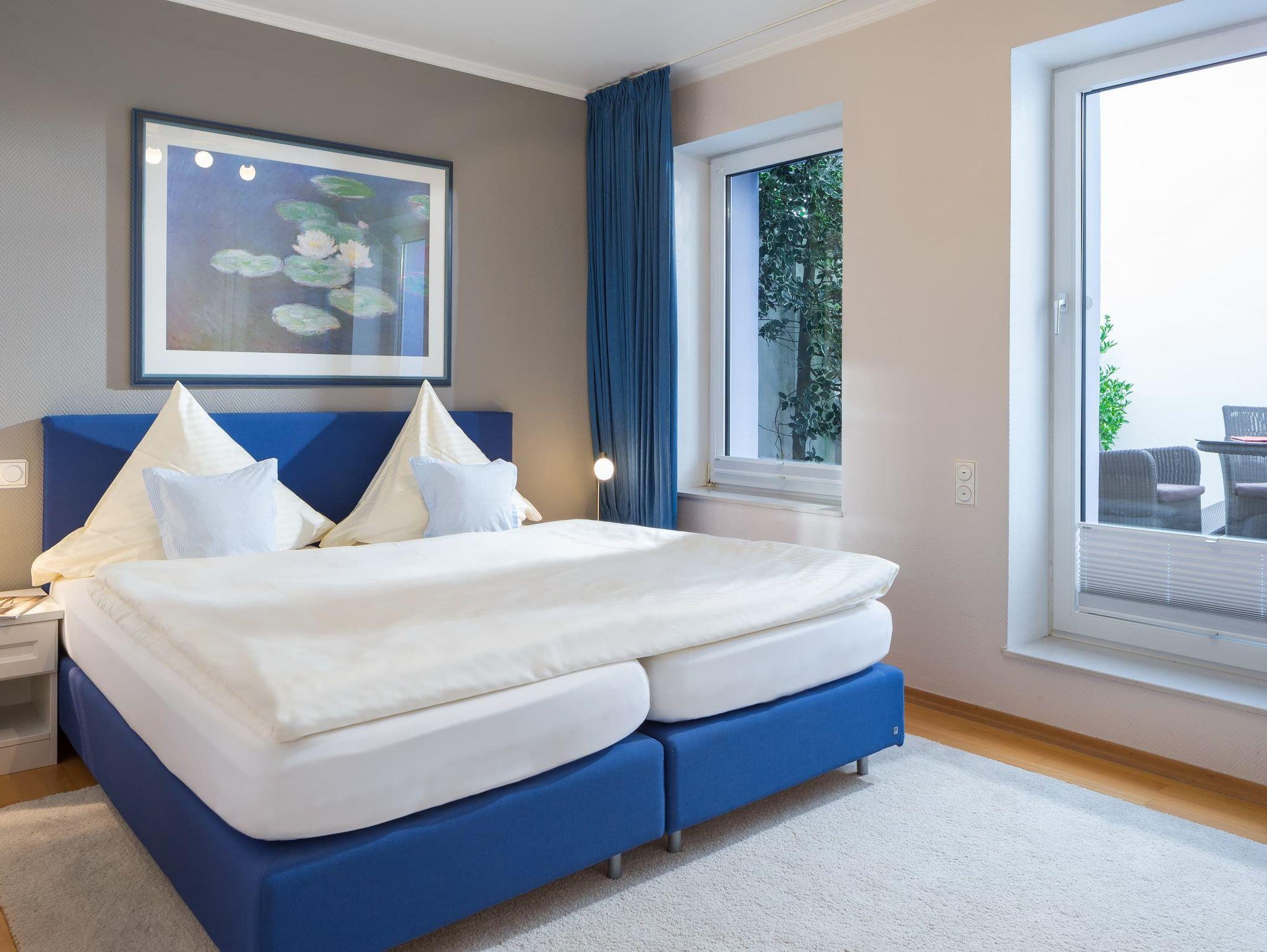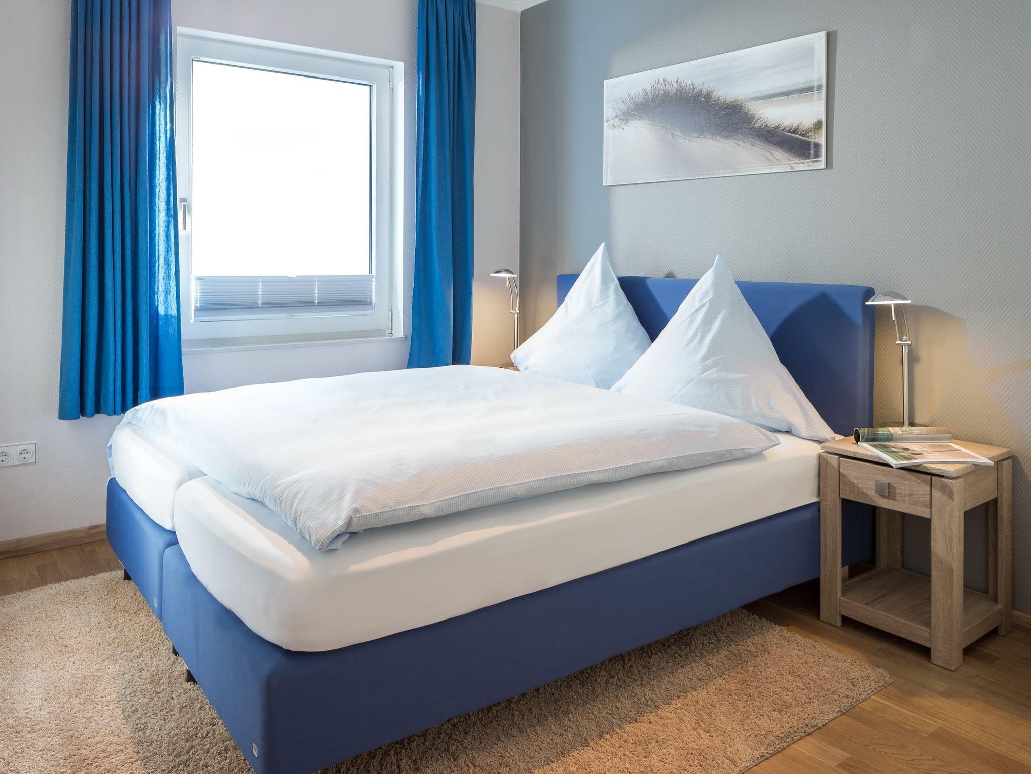 Die großzügige 80 m² EG-Wohnung mit einem 8 m² Lichthof bietet ausreichend Platz für bis zu 4 Personen. Die lichtdurchflutete Wohnküche mit großem, gemütlichem Essbereich verfügt über einen kleinen Freisitz im Außenbereich. Das komfortable Sofa im Wohnzimmer mit Kamin lädt zum gemütlichen Beisammen sein ein. Die beiden separaten Schlafzimmer verfügen je über ein Doppelbett. Ein Schlafzimmer hat zudem Zugang zum Lichthof. Die Wohnung mit Duschbad und separatem Gäste-WC ist für kleine, sowie große Familien ideal ausgestattet.
