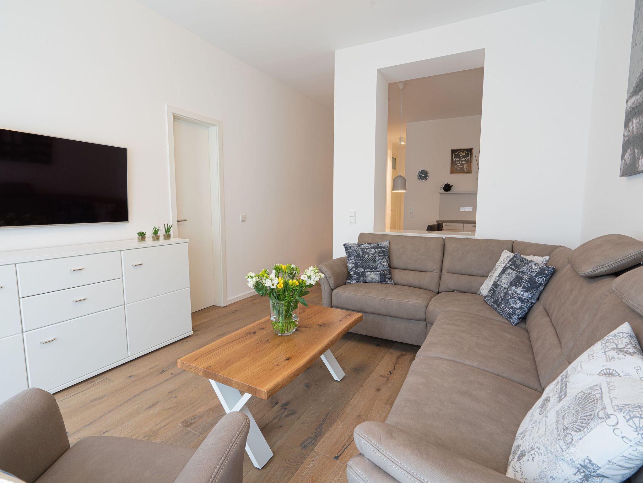Moderne Wohnung "Meergenuss" in Norderney nahe Strandpromenade, mit Terrasse, WLAN und stilvoller Ausstattung für entspannte Urlaubstage.