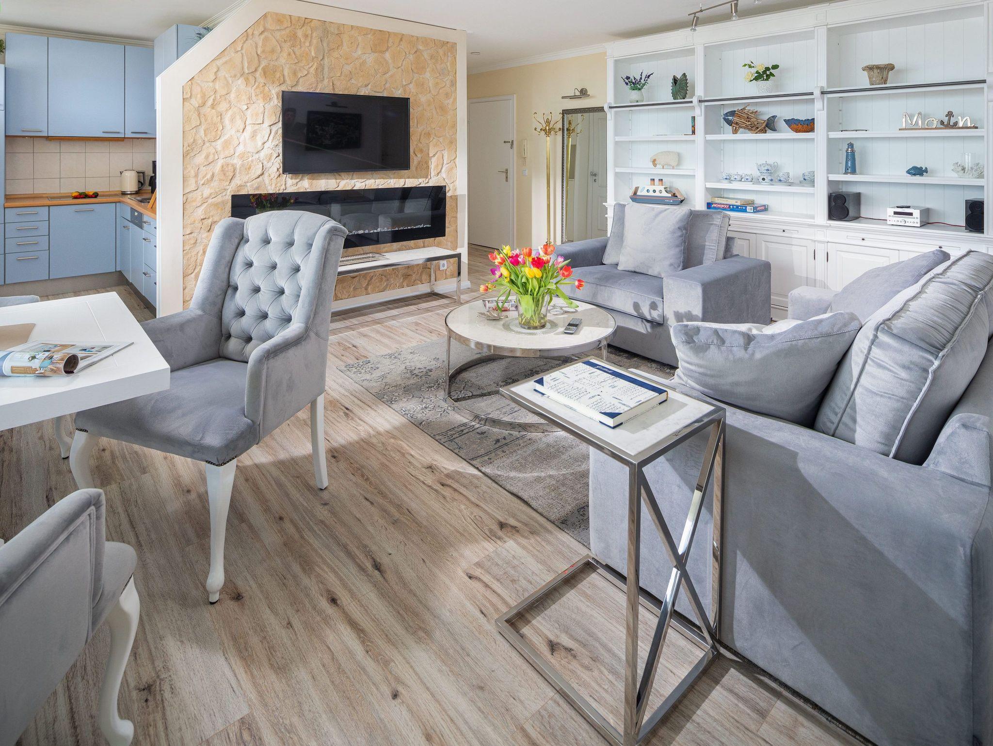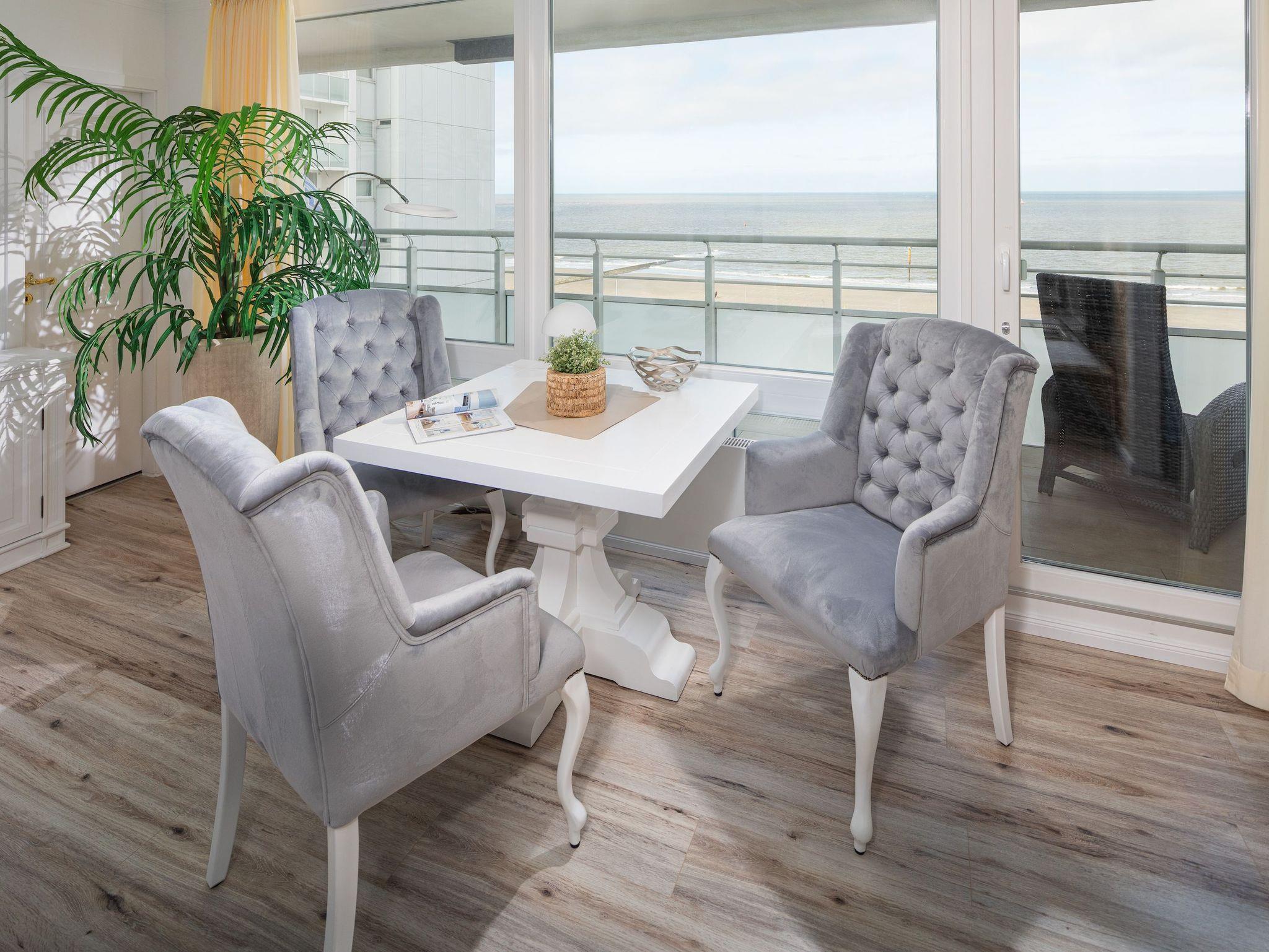 Modern eingerichtete Ferienwohnung mit Nordseeblick, großem Balkon und direkter Strandnähe auf Norderney.