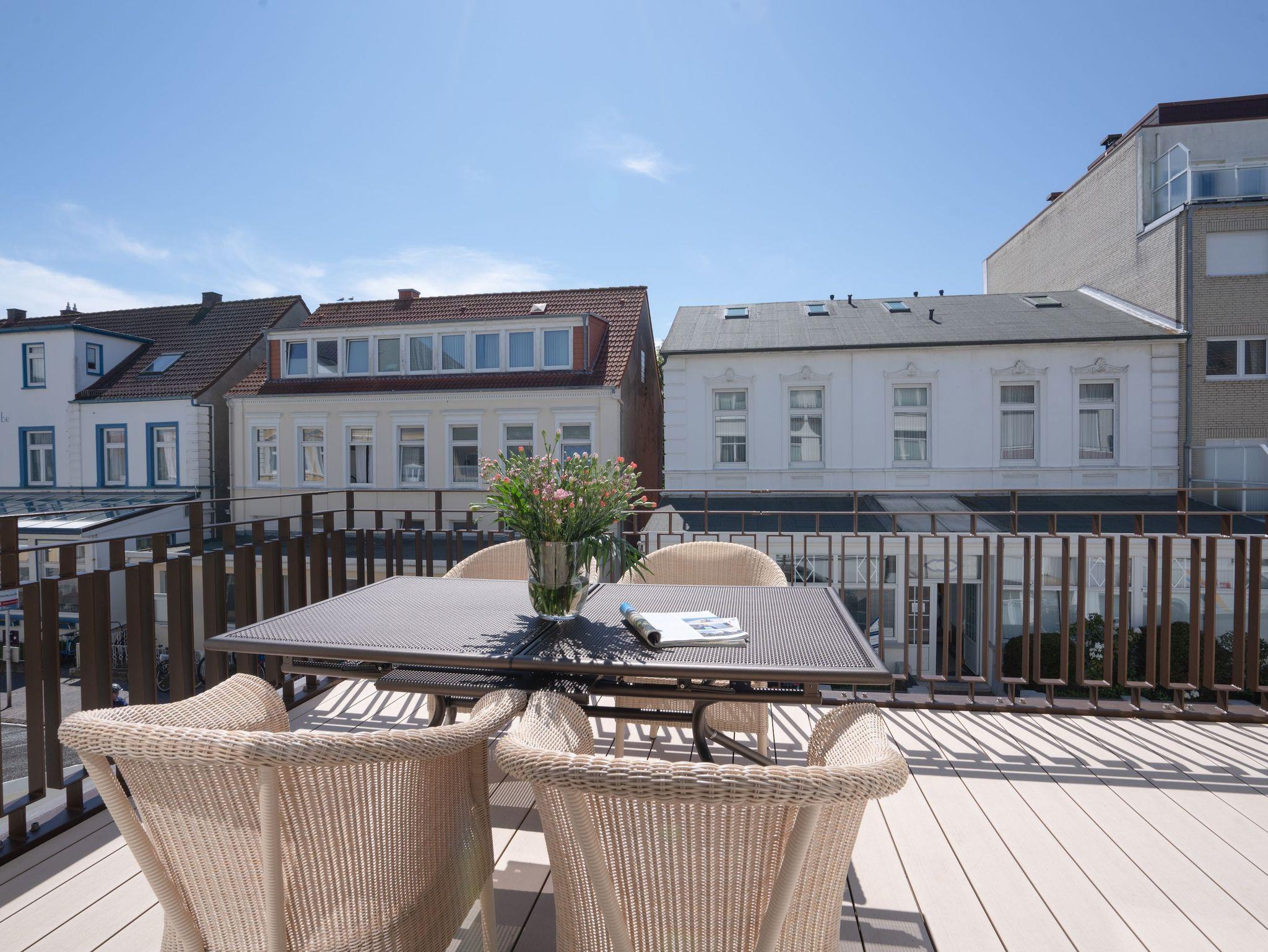 Exklusive Wohnung nahe Strandpromenade mit Meerblick und großer Dachterrasse auf Norderney.