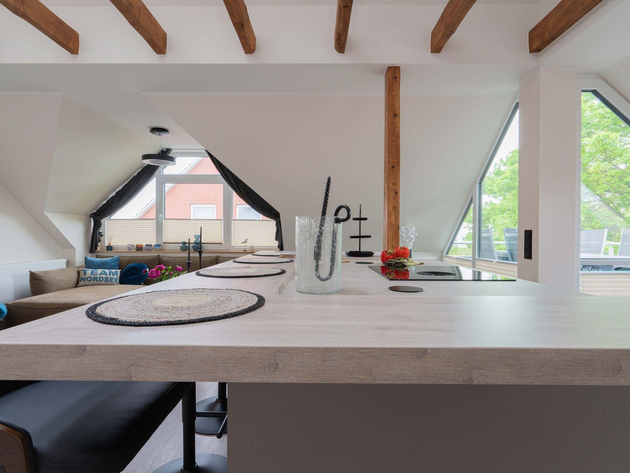 Die Ferienwohnung Neywatt 1 in Norderney bietet 70qm Wohnfläche, Balkon mit Wattenmeerblick und eine großzügige Wohnküche.