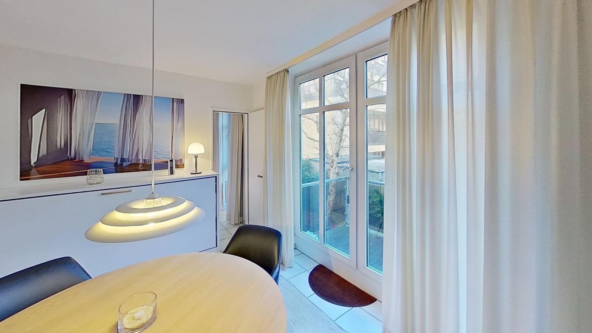 Die Ferienwohnung „Auszeit“ für drei Personen liegt in ruhiger Lage im Zentrum Norderneys. Sie bitte einen gemütlichen Wohnraum mit Esstisch und Zugang zum Balkon in den ruhigen Innenhof. In der Sitzecke mit Sofas lassen sich entspannte Abende verbringen. Das Norderneyer Schlafzimmer geht vom Wohnraum ab, genau wie die Küche. Von hier gelangen Sie ins Duschbad. Es stehen Ihnen gemeinschaftlich genutzte Waschmaschine und Trockner gegen Gebühr zur Verfügung. Sie gelangen zum Nordstrand (Kaiserwiese, Milchbar) in wenigen Minuten zu Fuß und sind ebenso im Stadtkern mit Restaurants und Einkaufsmöglichkeiten. Ein Fahrradverleih liegt in fußläufiger Entfernung.