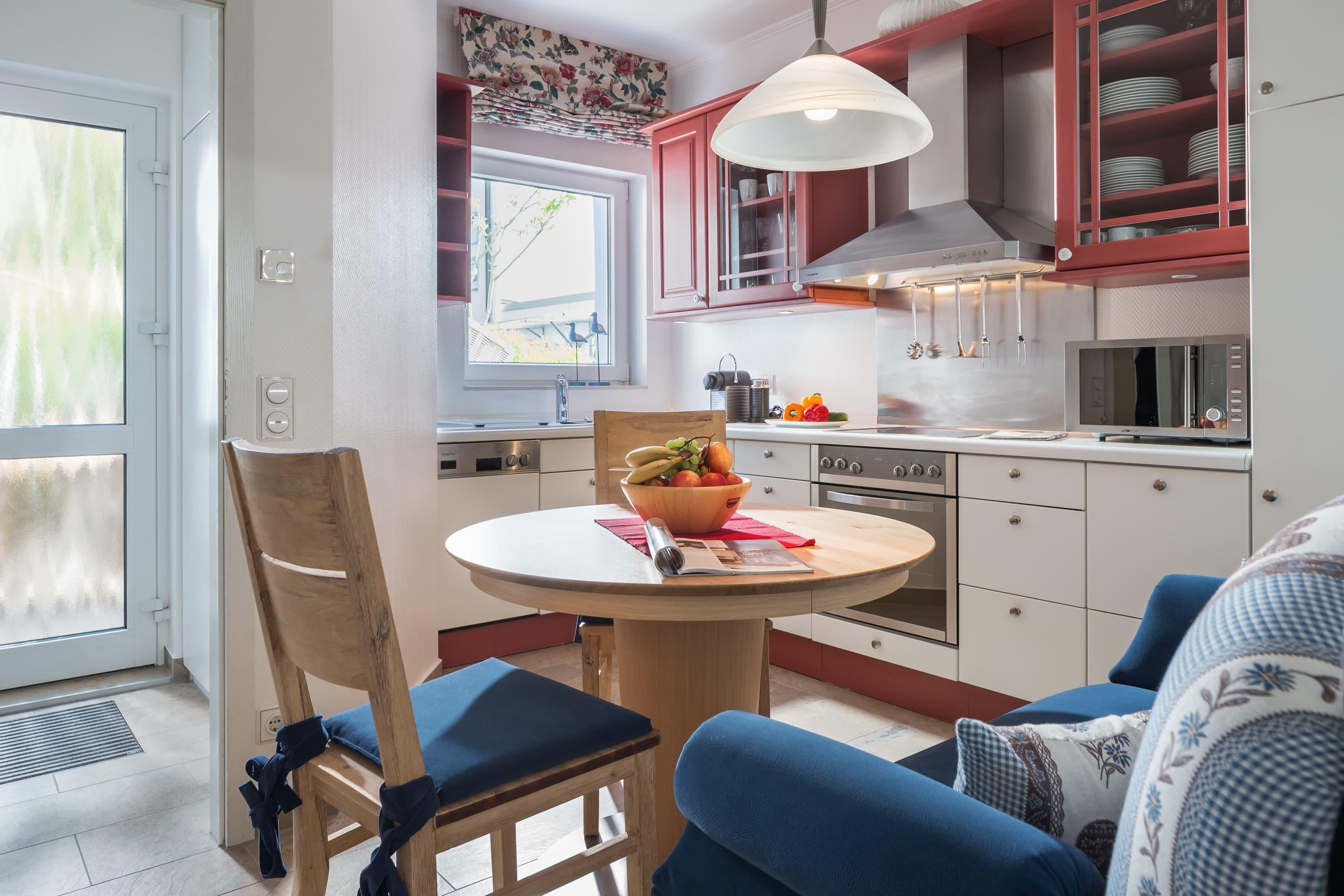 Sie ist hochwertig eingerichtet und lässt keine Wünsche offen. Die 2 separaten Schlafzimmer verfügen über ein Doppelbett, sowie ein komfortables Etagenbett. Besonders schön ist die Terrasse mit Strandkorb, die sie von der Küche und vom Wohnzimmer durch eine große Schiebetür begehen können. Die Wohnung verfügt über ein Duschbad.