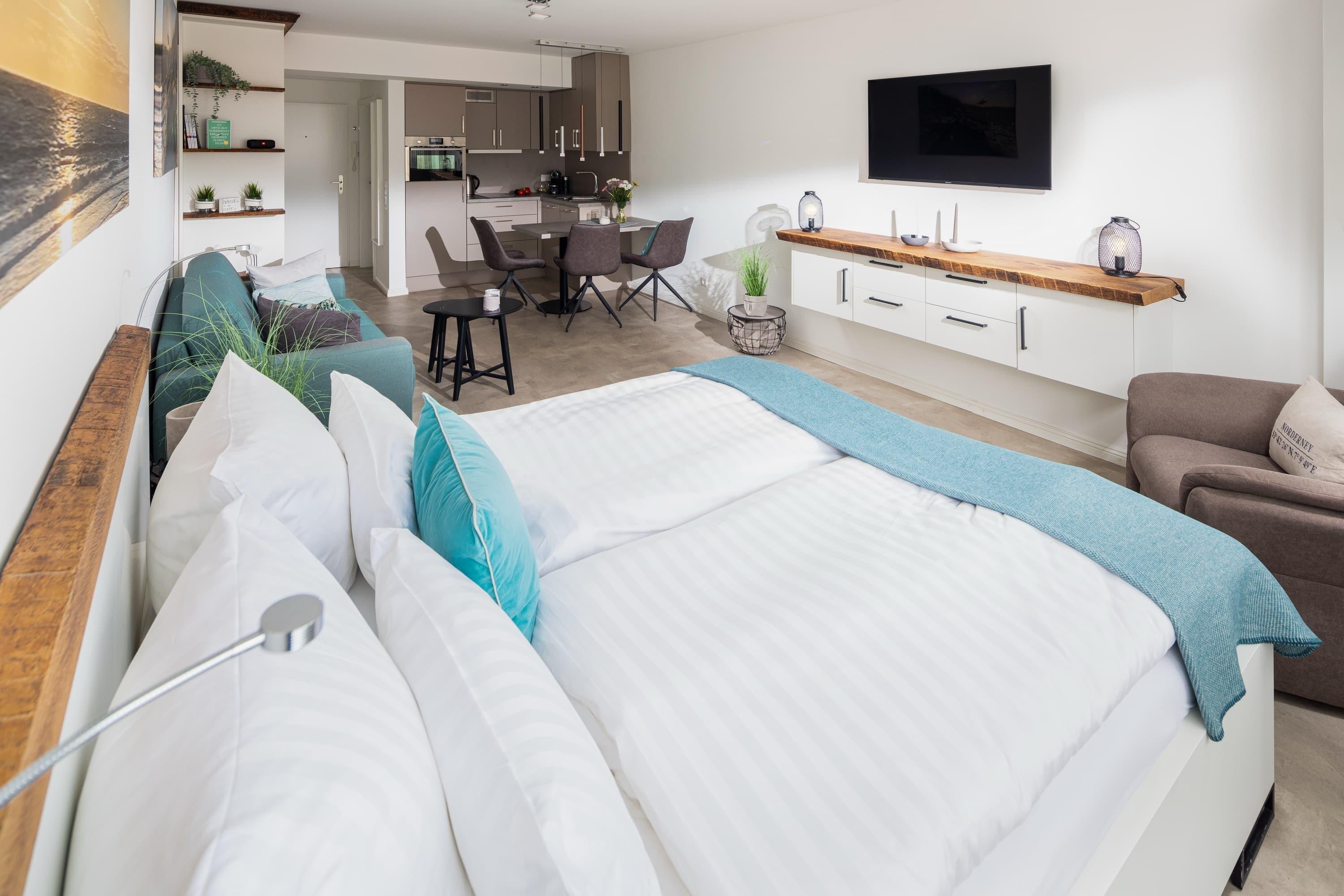 Moderne Ferienwohnung in zentraler Lage von Norderney, nur eine Gehminute zum Strand und Thalassobad.
