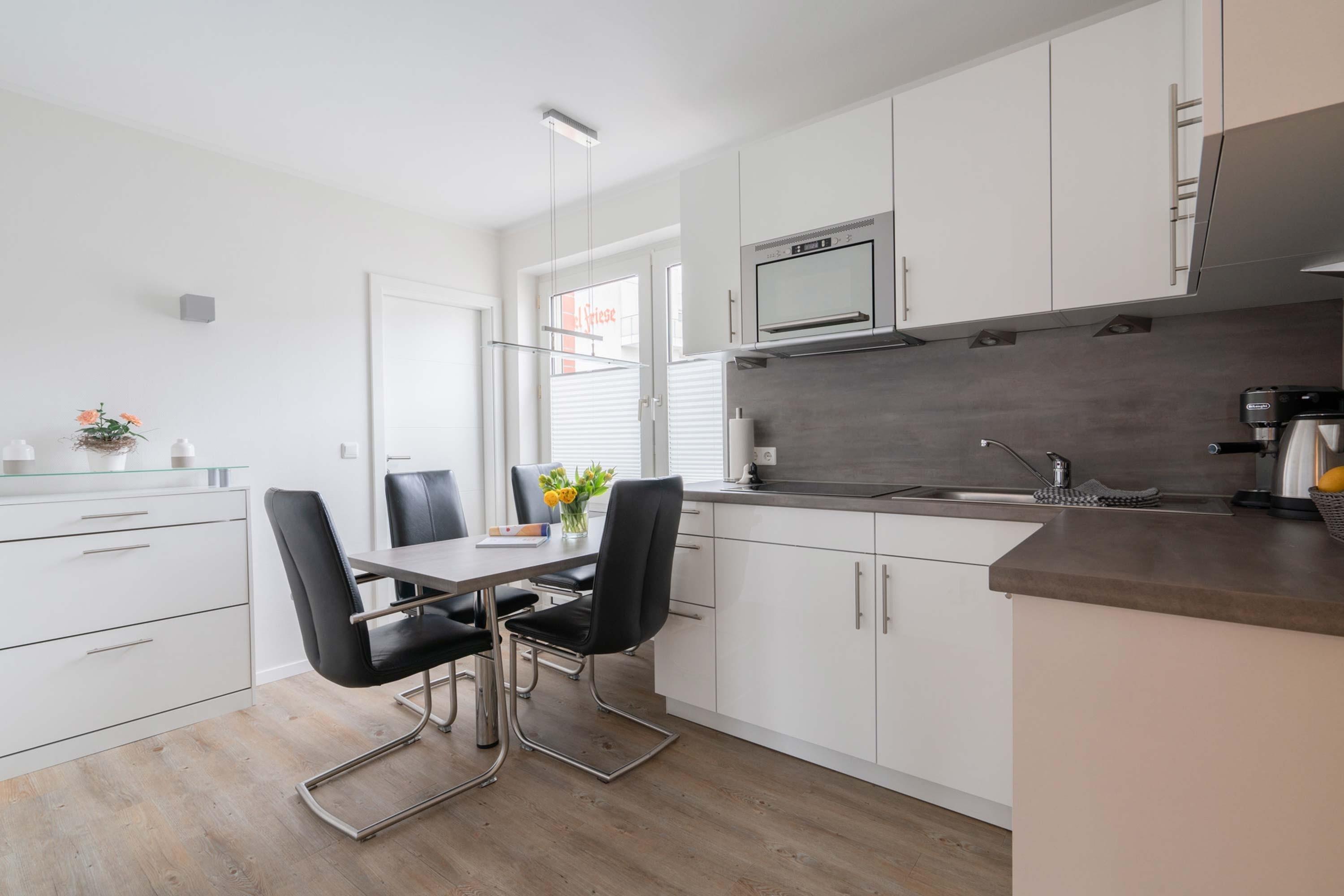 In der vollausgestatteten Küche mit Esstisch für 4 Personen können Sie sich selbst versorgen. Man munkelt, dass bei höflicher Anfrage aber auch Essen aus dem sehr beliebten Restaurant Amici (direkt unten im Haus) dort abgeholt werden kann!