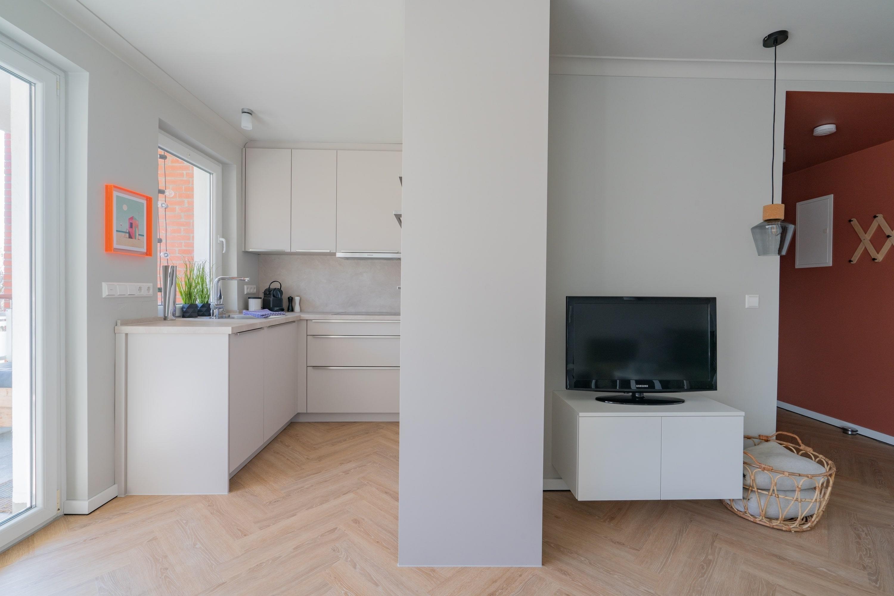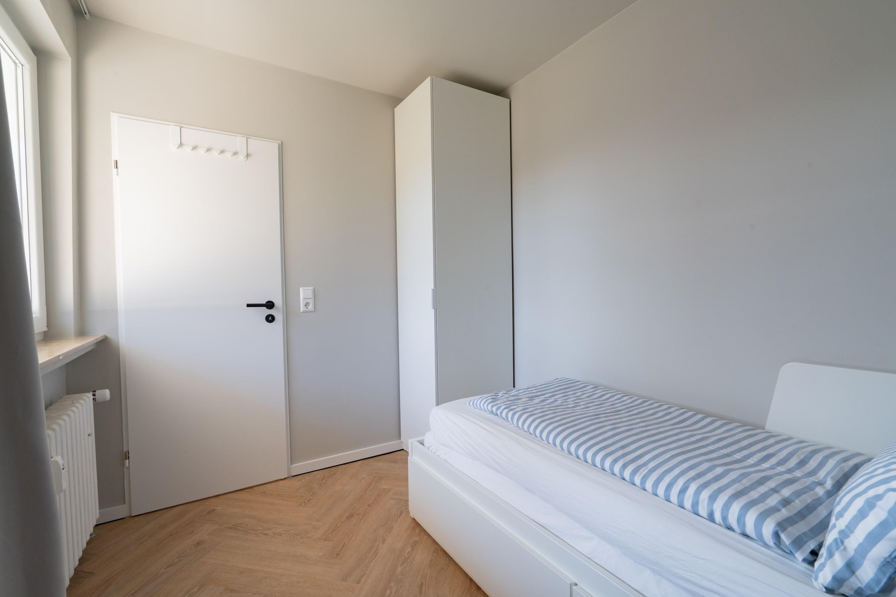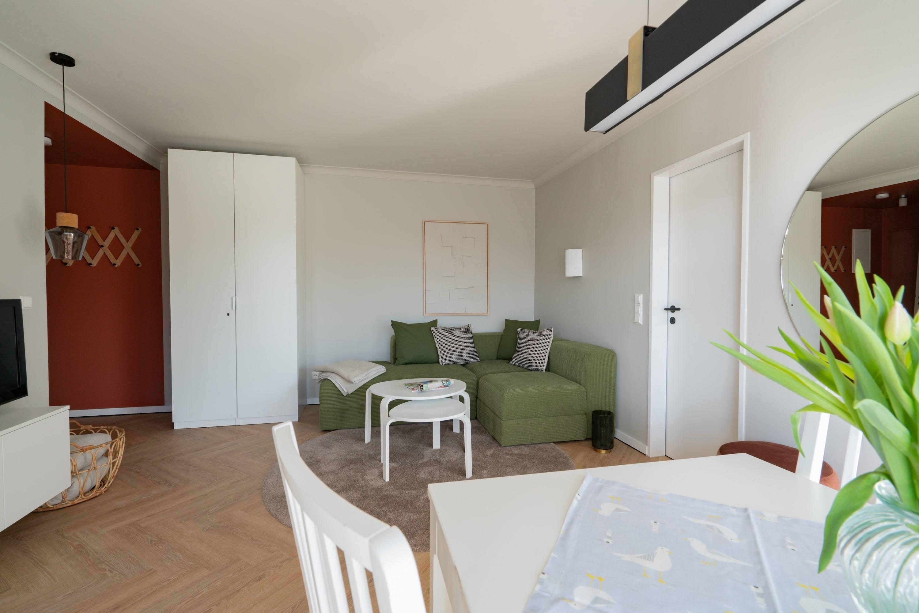 Die Wohnung bietet zwei Schlafzimmer: eines mit hochwertigem 1,80 m breitem Boxspringbett, das andere multifunktional – tagsüber ein Spielzimmer, abends verwandelt sich das Einzelbett in ein komfortables 1,60 m breites Doppelbett. Ideal für Familien mit Kindern!