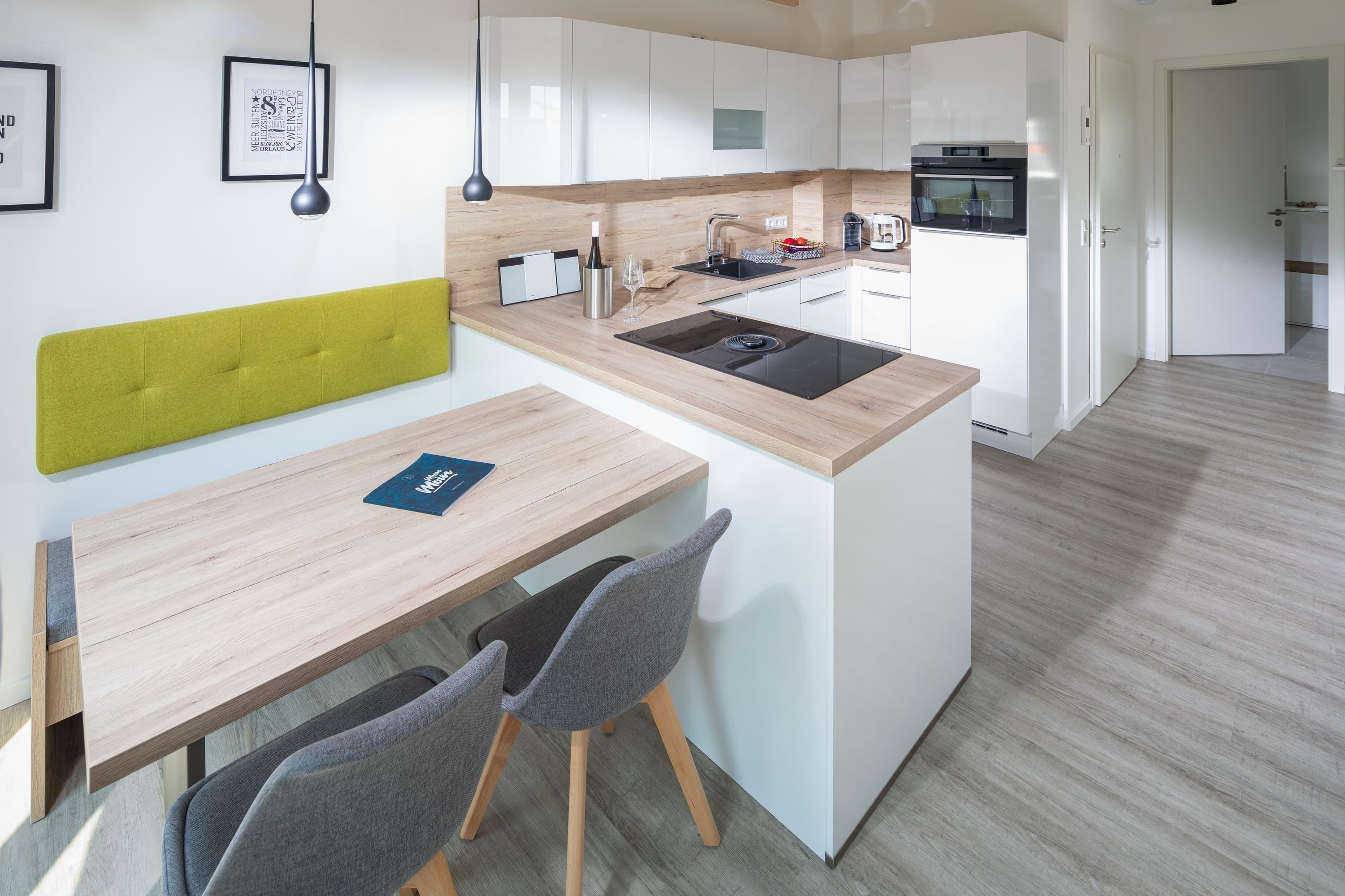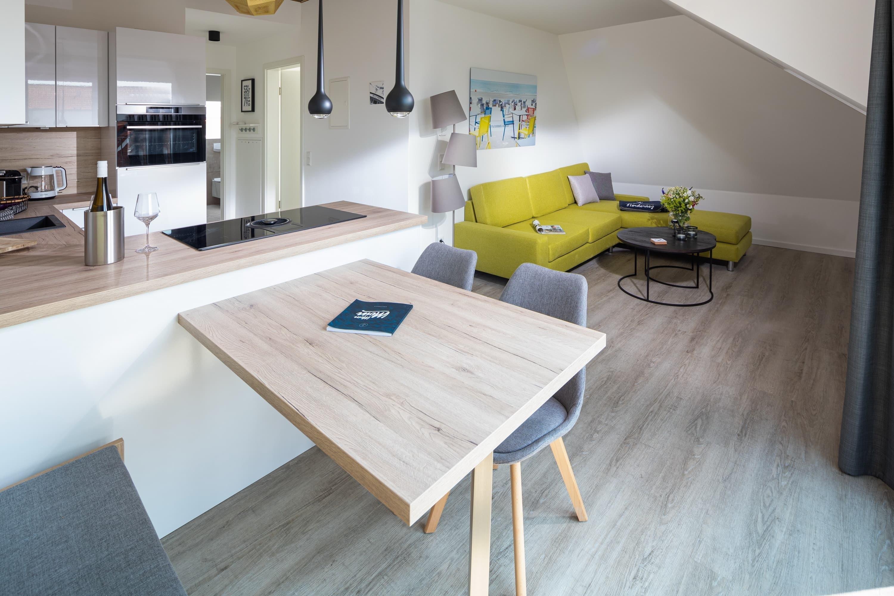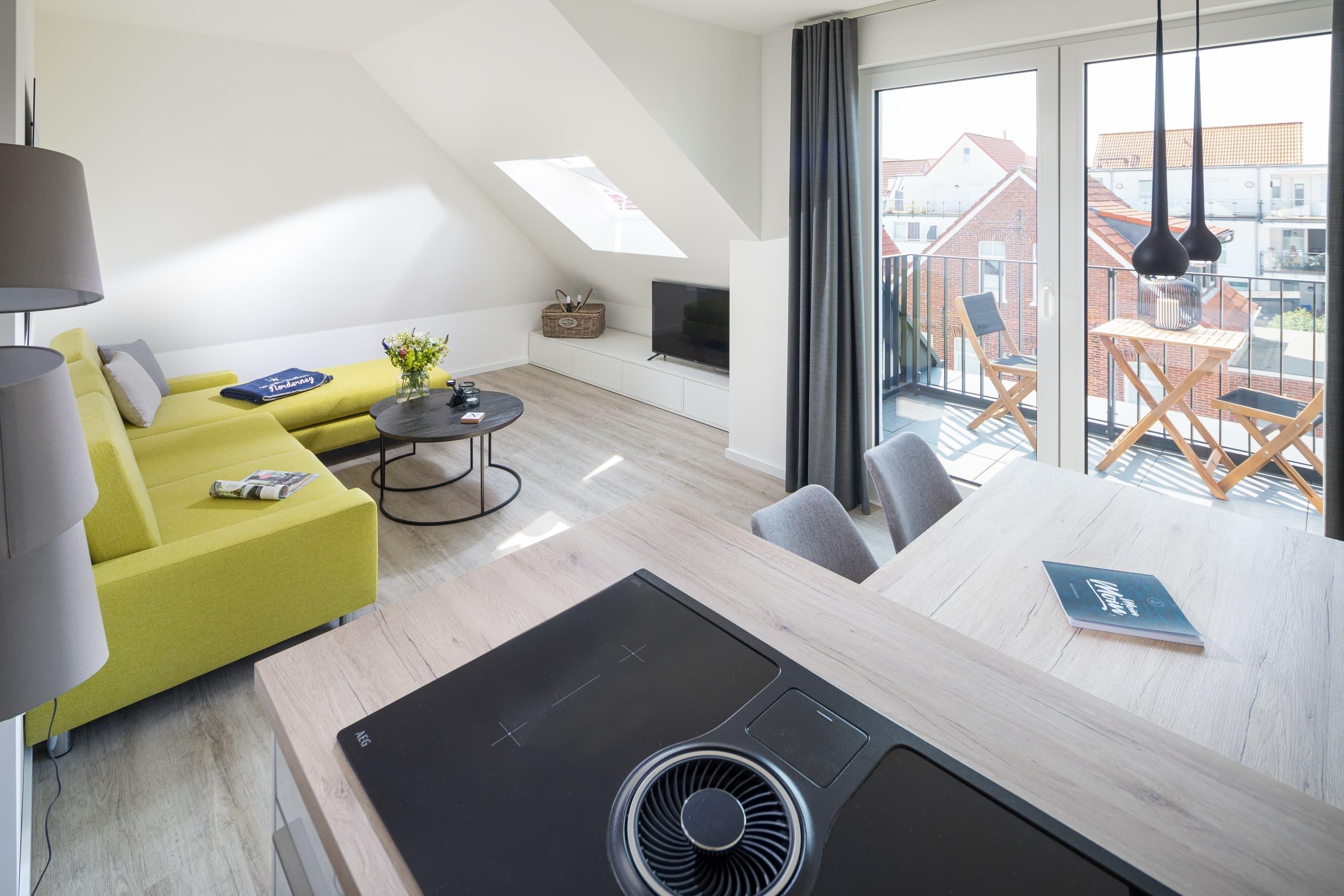 Die Meersuiten sind ein Neubau von 2020, gelegen am Rande der Norderneyer Innenstadt in einer ruhigen Seitenstraße, etwa 400m vom Nordstrand entfernt.
