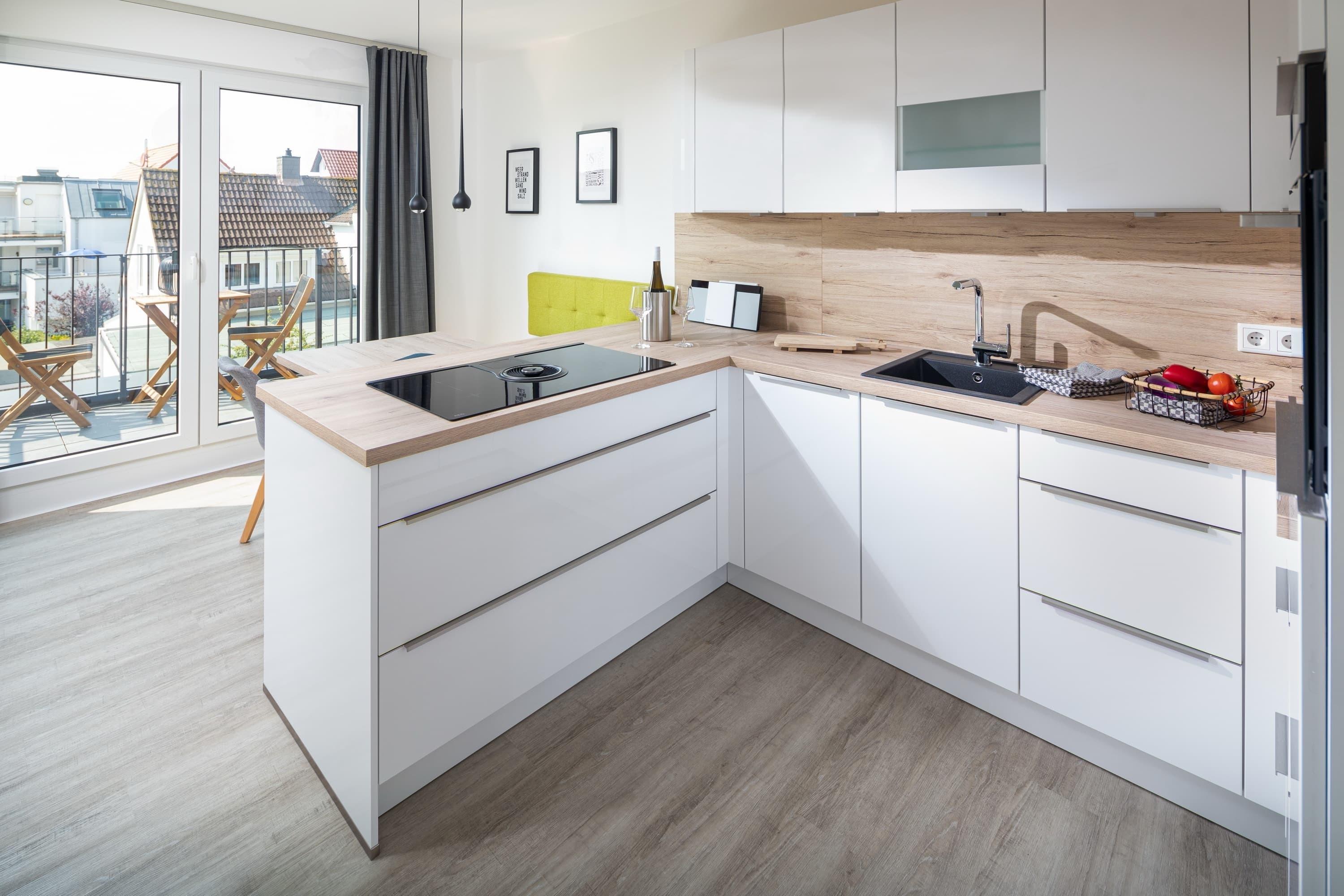 Im Haus gibt es insgesamt 7 Wohneinheiten. Die Meersuite N°6 liegt im 02. OG (Fahrstuhl) und verfügt über ein Schlafzimmer mit Boxspringbett, ein Badezimmer (ebenerdige Dusche) und einen gemütlichen Wohnraum mit Eckcouch, Esstisch, offener Küche und Zugang zum Balkon. Im Wohnraum steht Ihnen der Schlafgiebel mit zwei Einzelbetten als alternative bzw. zweite Schlafgelegenheit zur Verfügung. In dieser Wohnung sind Hunde herzlich willkommen!