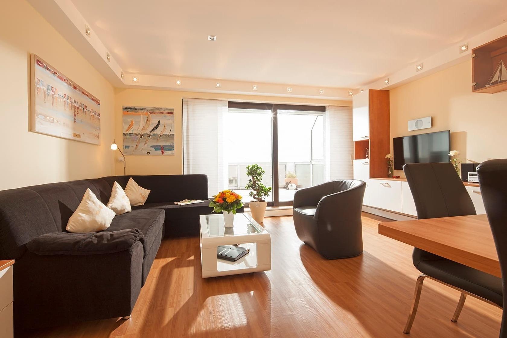 Die voll ausgestattete 2-Raum-Wohnung bietet Ihnen auf einer Größe von ca. 60 qm Platz für einen angenehmen und erholsamen Urlaub. Die Wohnung verfügt über einen großzügigen und gemütlich eingerichteten Wohnraum mit Essplatz, ein separates Schlafzimmer, eine moderne Küche, ein Badezimmer mit Dusche und WC sowie eine großzügige Sonnenterrasse, auf der Sie den attraktiven MEERBLICK auf die “aktive” Seeseite genießen können. Zur Verfügung steht Ihnen ausserdem das hauseigene Schwimmbad mit Sauna.