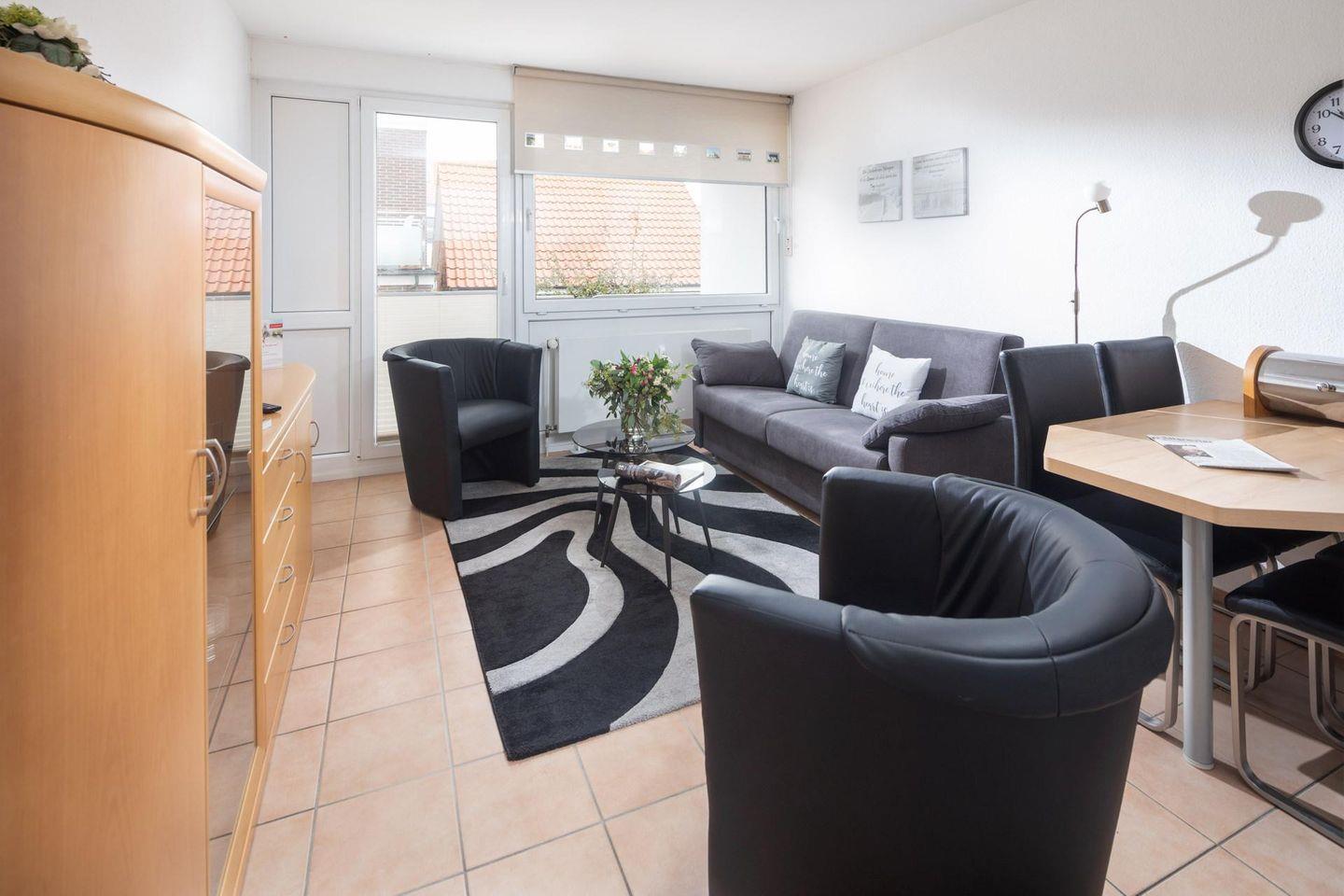 Gemütliche Ferienwohnung Iderhoff 52 in zentraler Lage am Onnen-Visser-Platz, nur 300 m vom Strand entfernt.
