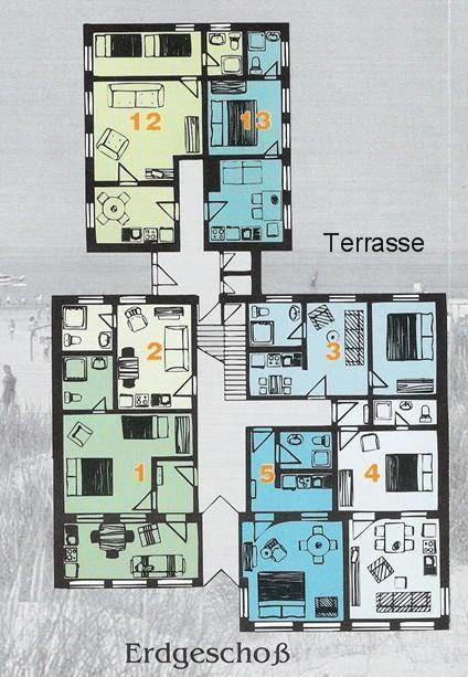Die Ferienwohnung "Sommerwind 13" befindet sich im Erdgeschoss des Hauses "Sommerwind". Das Haus liegt in der Kreuzstraße. Das Haus "Sommerwind" wurde um 1900 erbaut und 1995 im typischen Bäderstil renoviert.