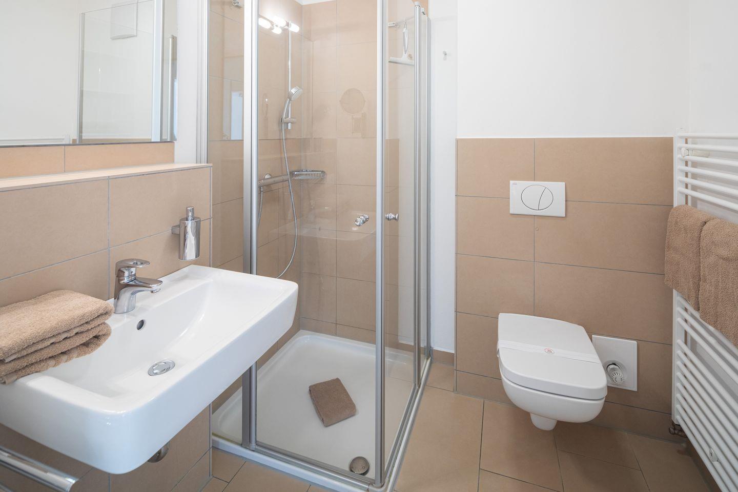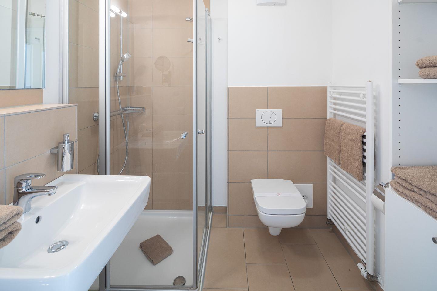 Bei der Gestaltung der Räume wurde auf harmonische Naturfarben Wert gelegt. Die Wohnung verfügt über einen Wohnbereich mit Sitzecke, einer Essecke und einer sehr gut ausgestatteten Küche. Zudem gibt es in der Wohnung zwei Flachbildfernseher und eine Hifi-Kompaktanlage. Das Badezimmer ist mit Echtholzparkett und Naturstein ausgestattet. Im Schlafzimmer befindet sich ein Doppelbett. Ein Highlight der Wohnung ist die nach Süden ausgerichtete Dachterrasse (ca. 20qm). Diese kann sowohl durch das Wohnzimmer als auch durch das Schlafzimmer betreten werden. Waschmaschine und Wäschetrockner befinden sich im Haus und stehen (für die gemeinschaftliche Nutzung gegen Münzeinwurf) zur Verfügung, was besonders für längere Aufenthalte von Vorteil ist. Hunde sind in dieser Wohnung nicht erlaubt.