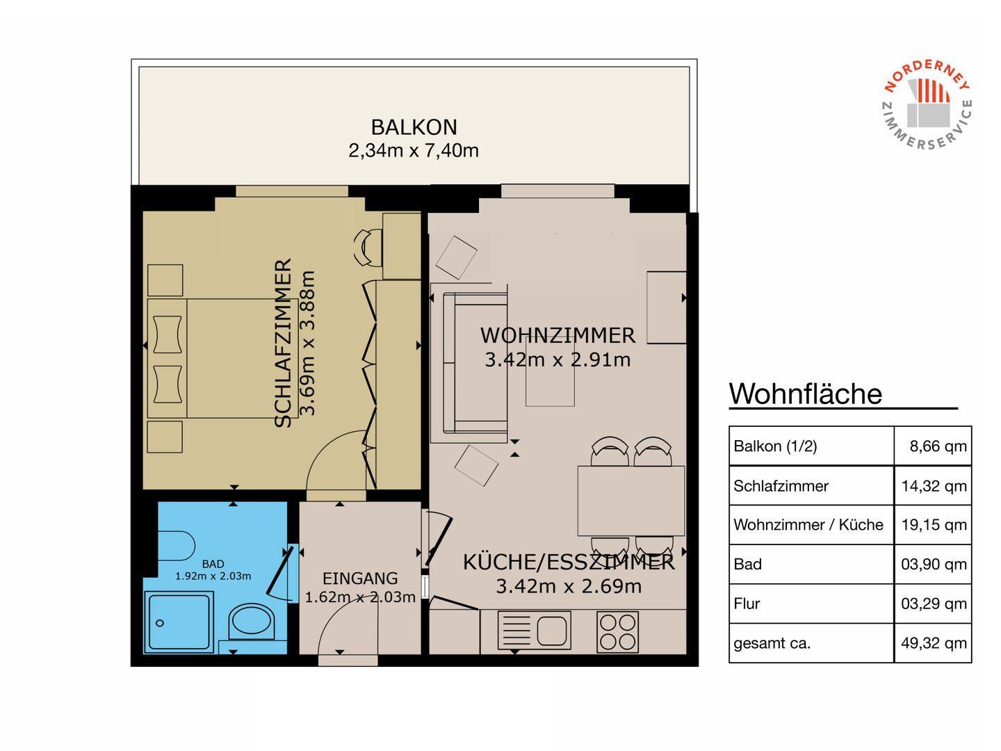Gemütliche Ferienwohnung mit Dachterrasse und moderner Ausstattung nahe Strand und Zentrum von Norderney.