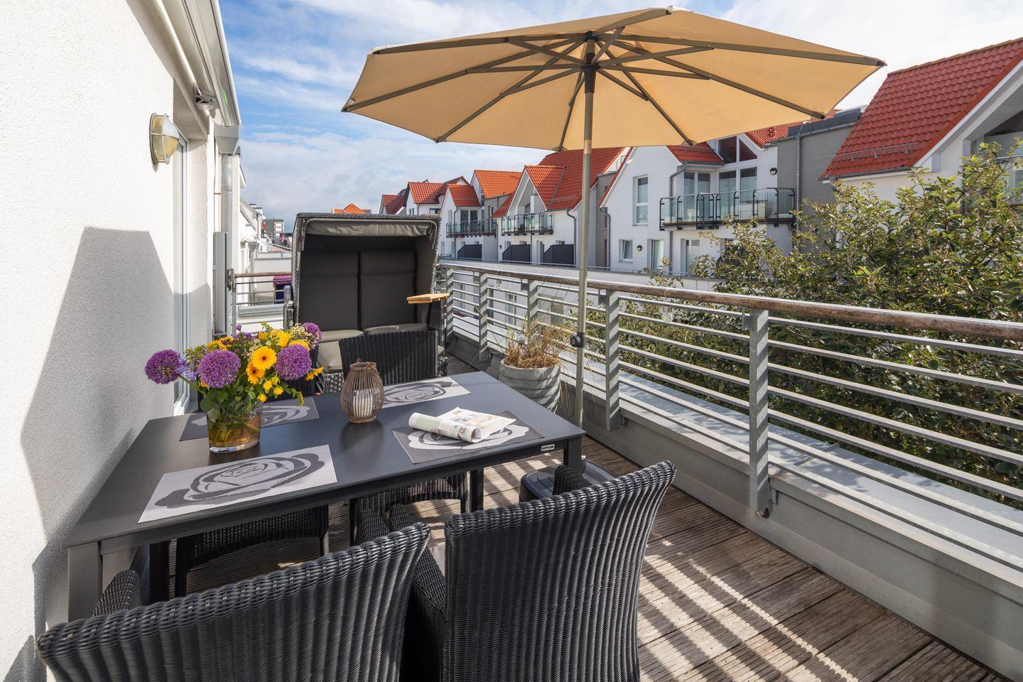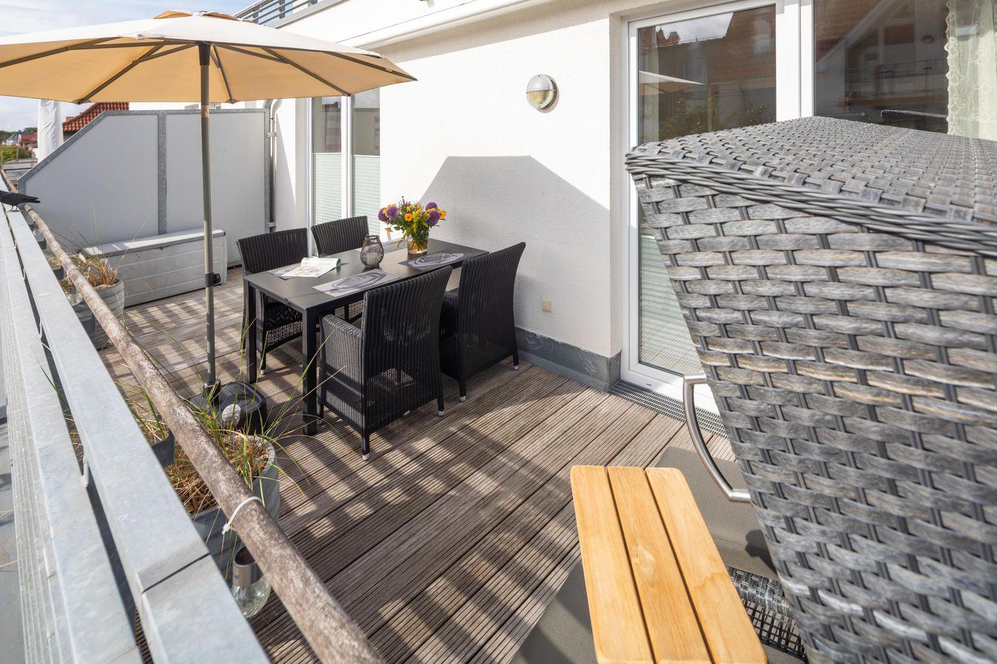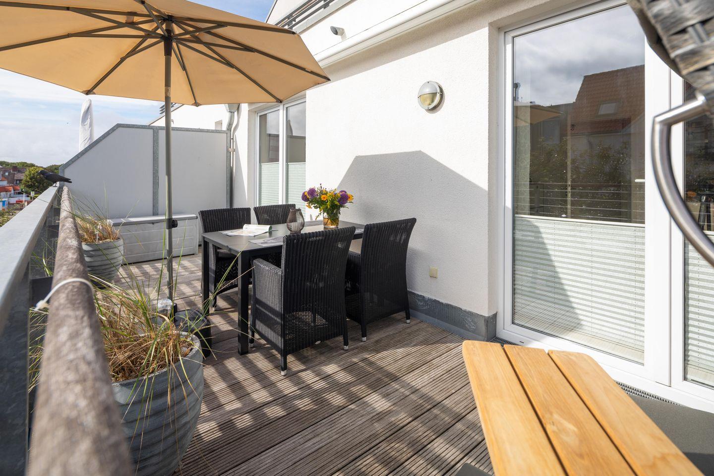 Moderne Ferienwohnung 'Sonnendecks 2' in Norderney mit Dachterrasse und Strandnähe.