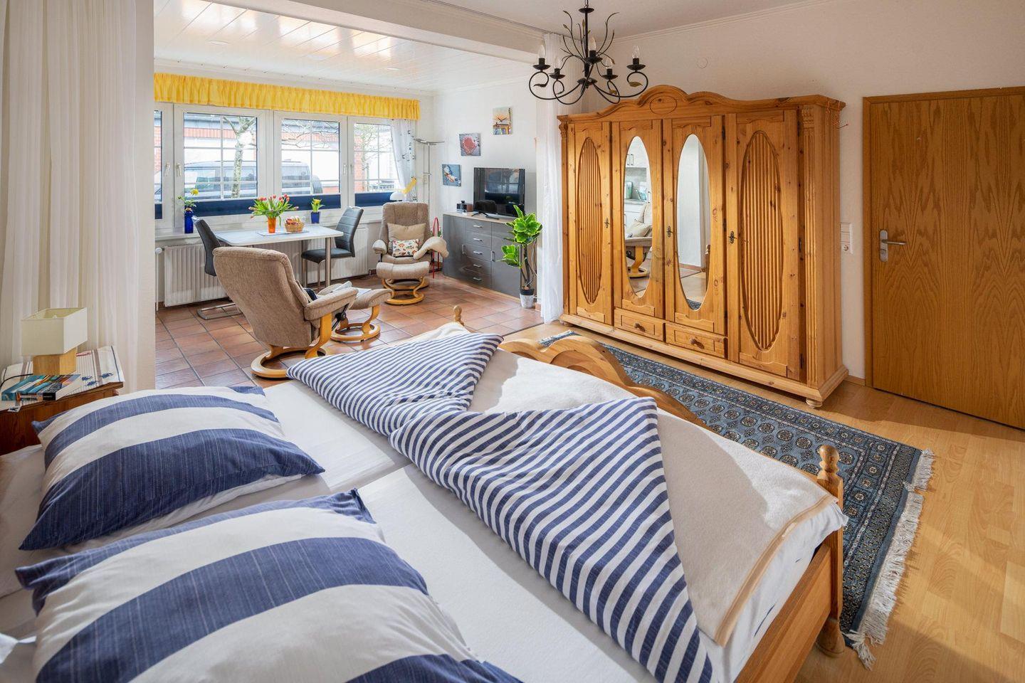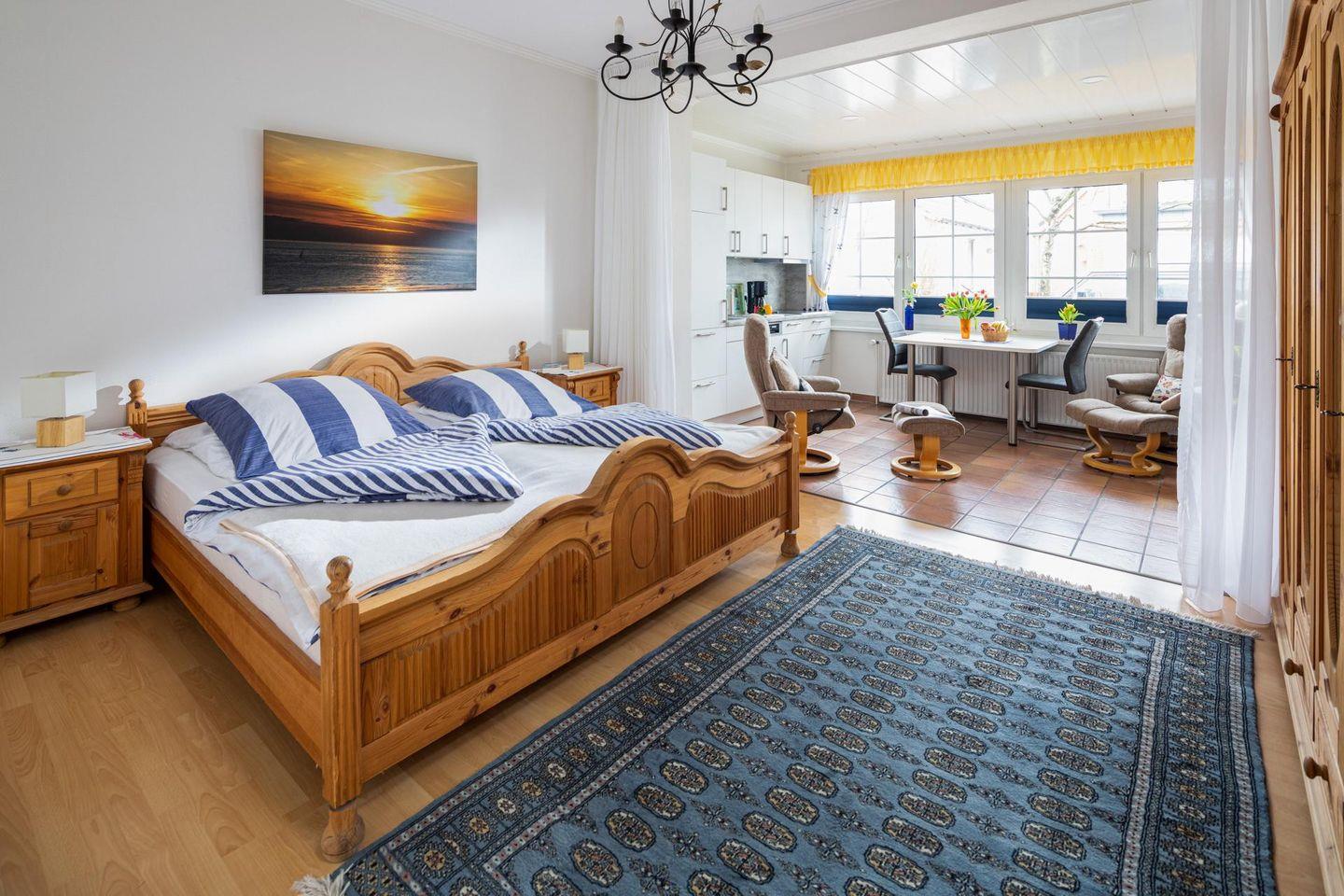 Die Nähe zur Innenstadt ist ein Vorteil dieser Unterkunft. Innerhalb von wenigen Gehminuten sind zahlreiche Cafés, Restaurants oder andere Einkaufsmöglichkeiten erreichbar. Hier darf auch der vierbeinige Freund mitkommen, denn die Ferienwohnung "Büx" heißt auch Hunde herzlich willkommen. Erlaubt ist maximal 1 Hund (Höhe maximal kniehoch). Die Hundewiese befindet sich in der Nähe des Fährhafens (kein Leinenzwang).