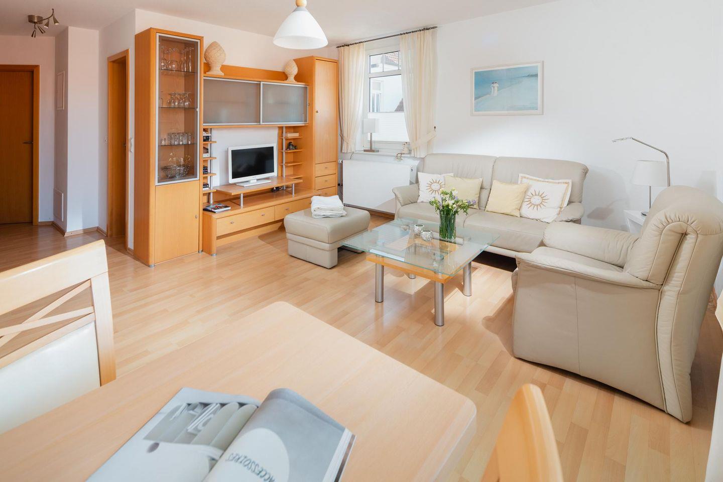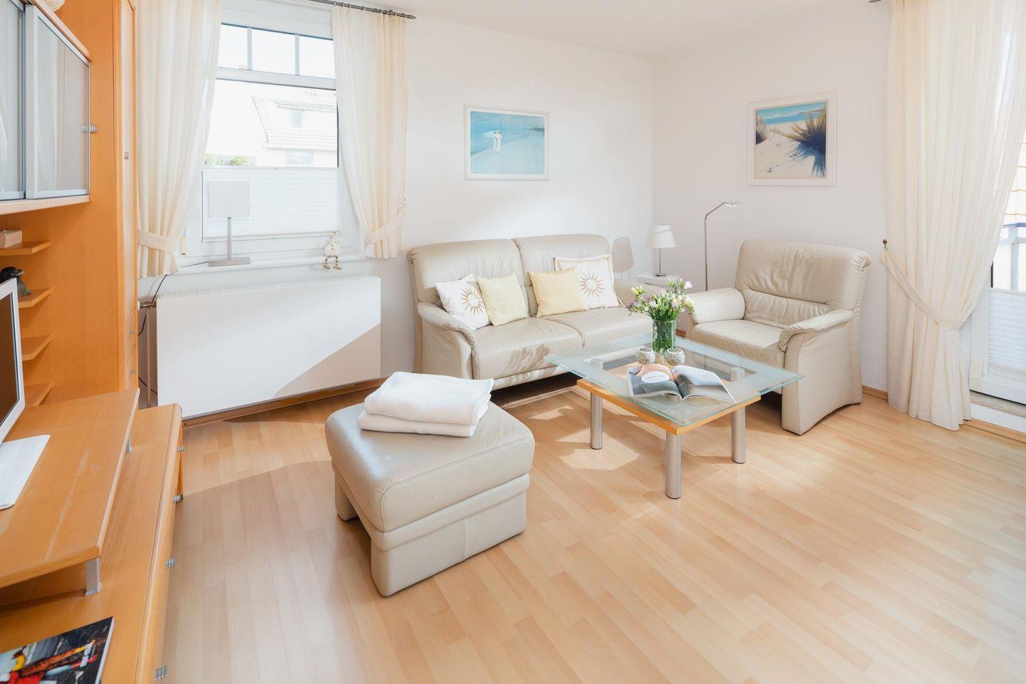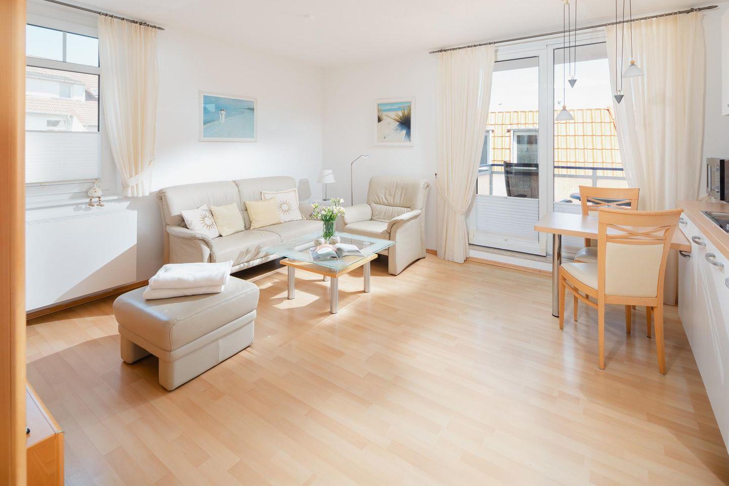 Die Ferienwohnung Windrose 16 auf Norderney bietet modernen Komfort und Balkon in zentraler Lage nahe Kurpark.