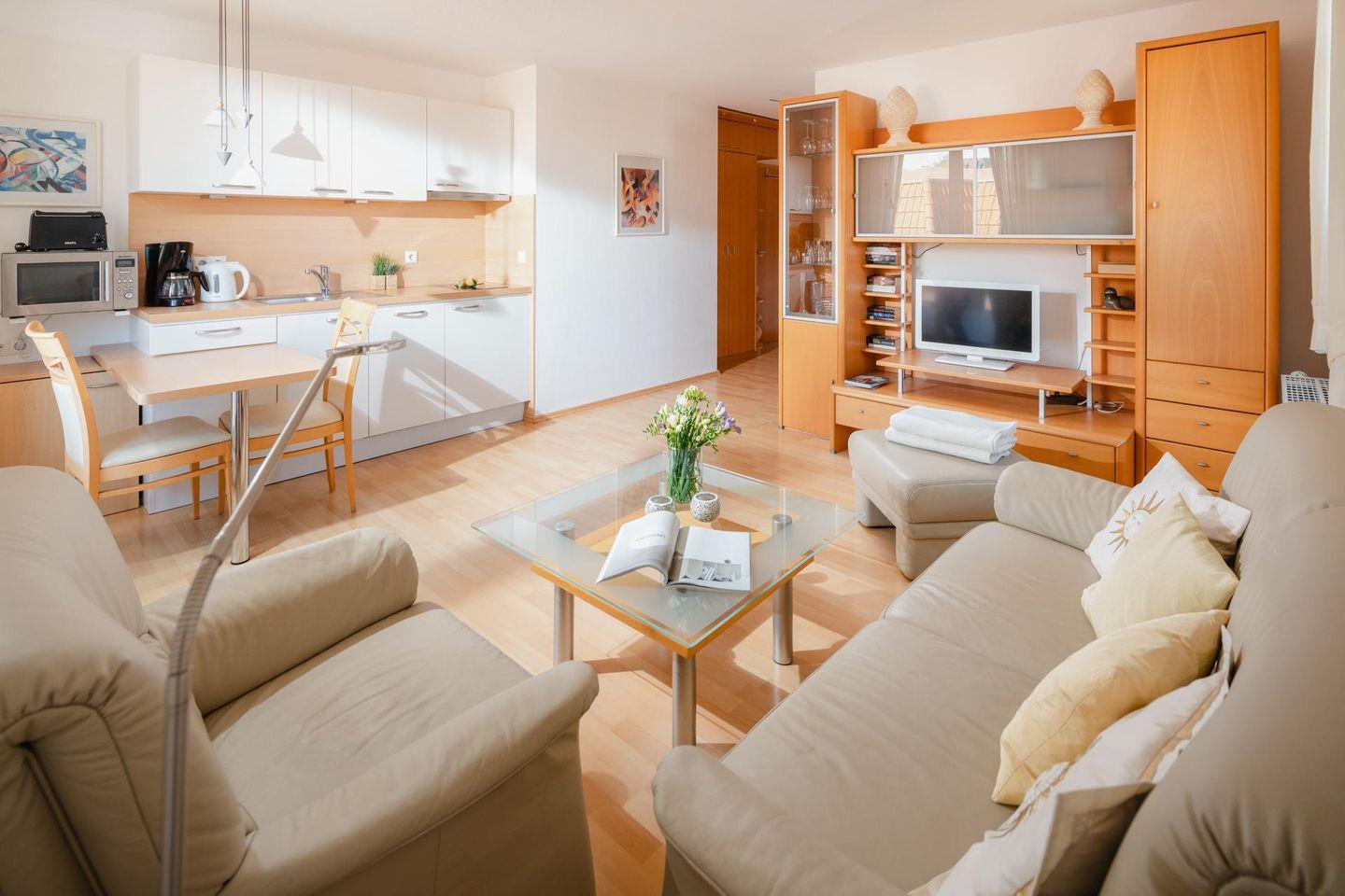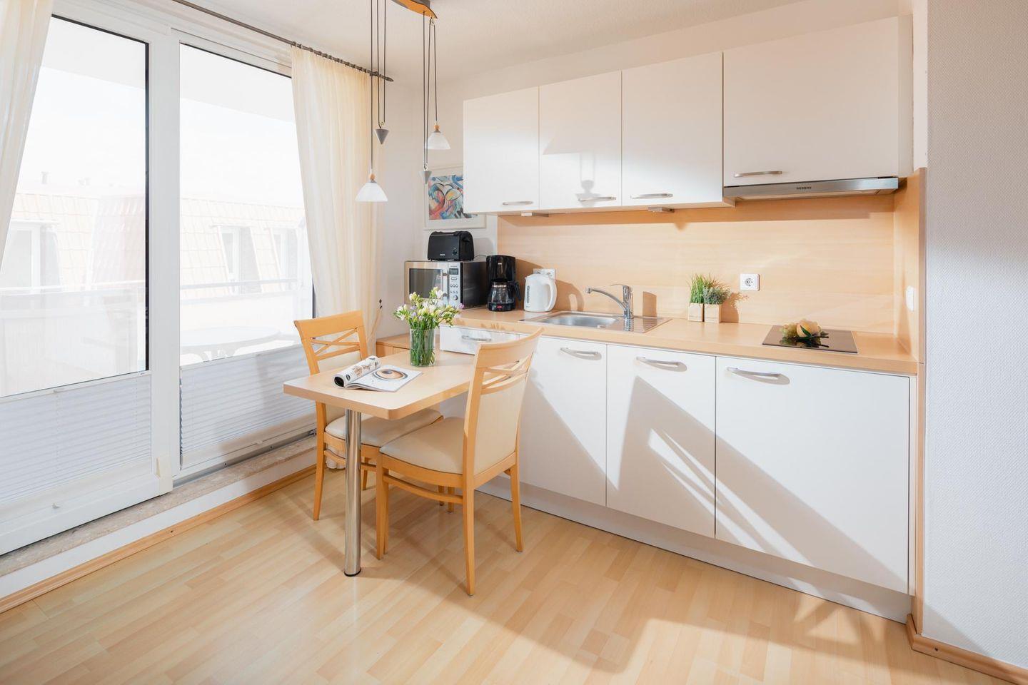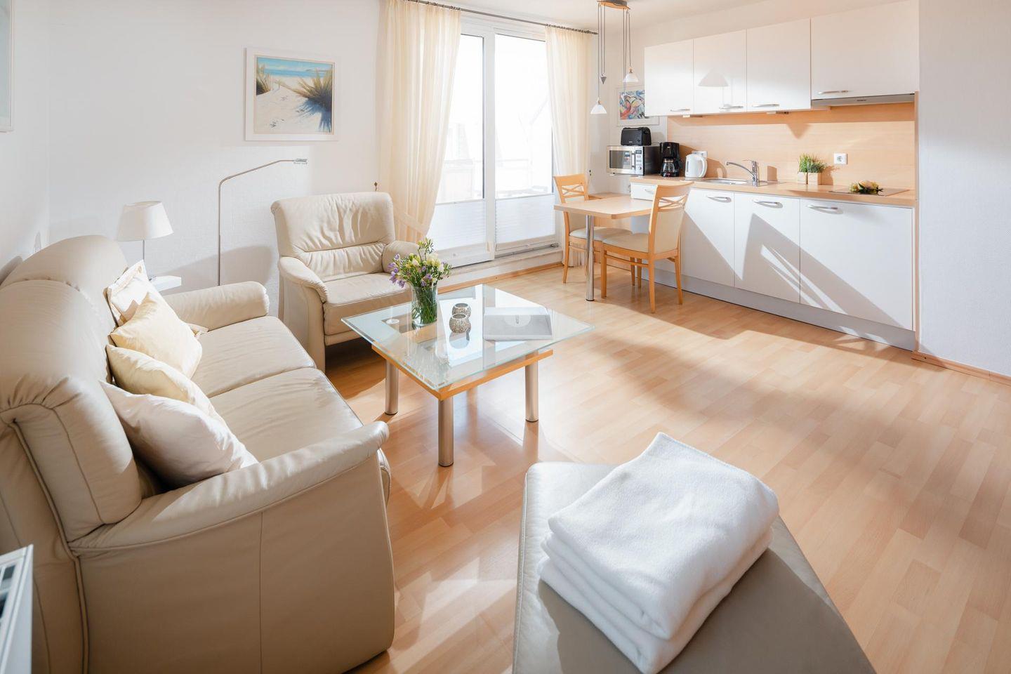 Die Ferienwohnung Windrose 16 auf Norderney bietet modernen Komfort und Balkon in zentraler Lage nahe Kurpark.