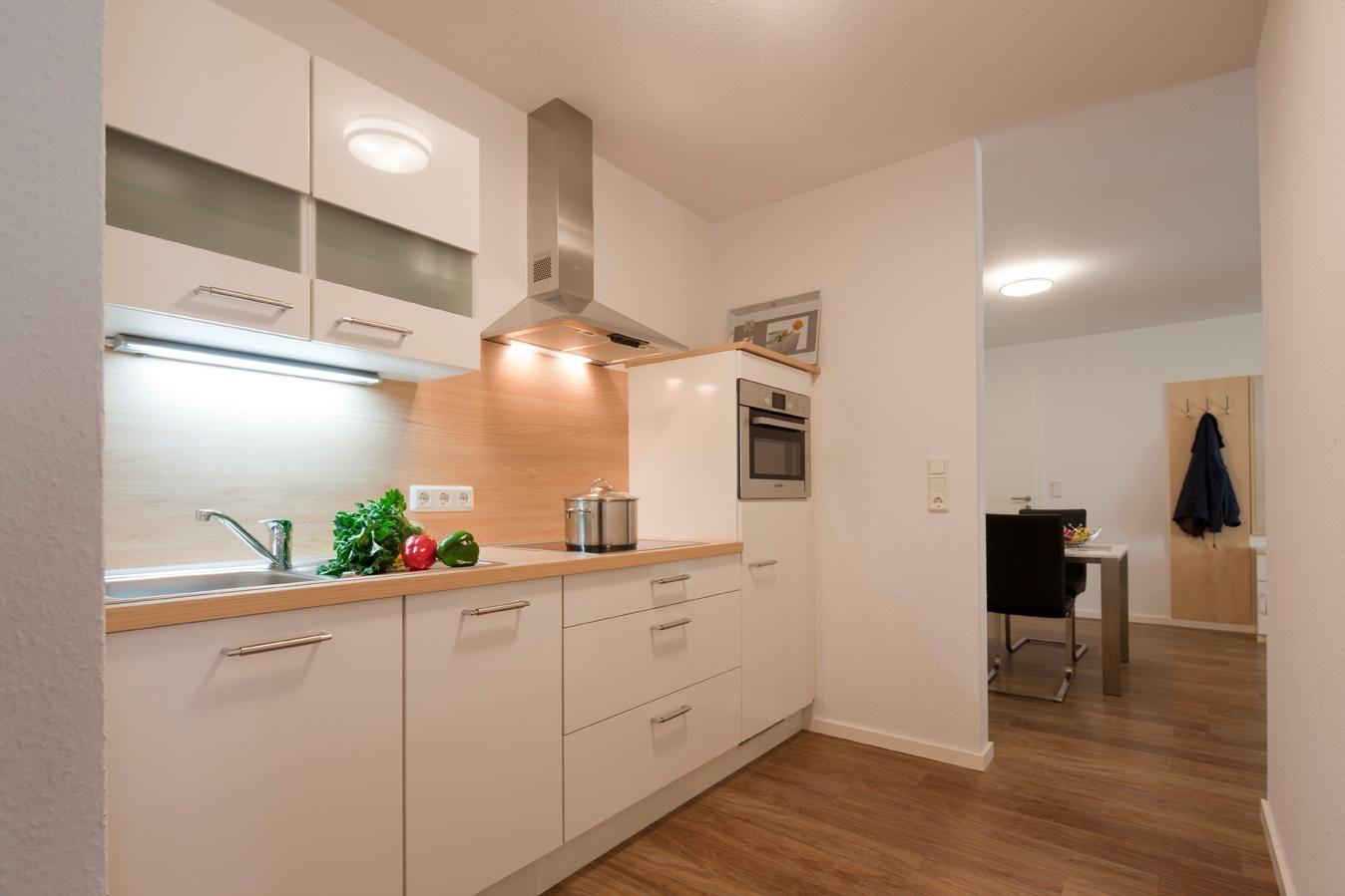 Die Wohnung verfügt über ein Wohnzimmer, zwei Schlafzimmer (eines mit einem Doppelbett ausgestattet und das andere mit zwei Einzelbetten) und eine offene Küche mit einem Esstisch. Das Badezimmer ist mit einer Dusche, einem Handtuchtrockner und einer Fußbodenheizung ausgestattet. Darüber hinaus, gibt es zwei Fernsehgeräte in der Wohnung. Der kleine Balkon der Wohnung liegt in Richtung des begrünten Innenhofes.