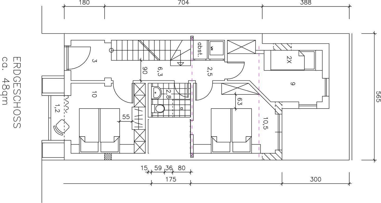 Das Haus ist aufgeteilt auf zwei Etagen. Bei der Innengestaltung wurde großen Wert auf natürliche Farben und hochwertige Materialien gelegt. Im Erdgeschoss des Hauses befinden sich eine Dusche/WC sowie ein separates WC. Es sind 3 Schlafzimmer vorhanden, zwei mit einem Doppelbett und eins mit einem Etagenbett. Der Wohnbereich mit offener Küche wurde modern gestaltet. Die moderne Küche ist voll ausgestattet mit einer Kaffeemaschine, einem Wasserkocher, einem Toaster, einer Mikrowelle sowie einem Ceranfeld mit vier Platten und einer praktischen Spülmaschine. Ein kleines Highlight ist die Dachterrasse. Hunde sind in dieser Unterkunft nicht erlaubt.