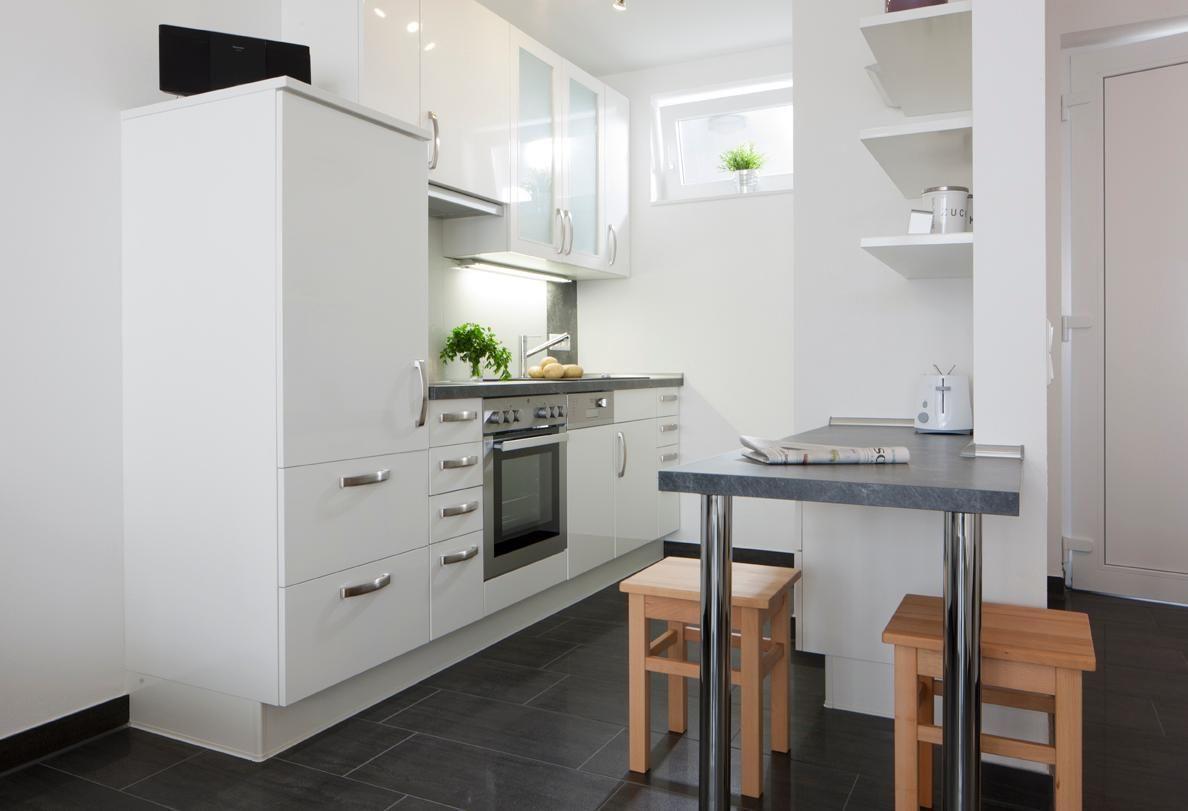 Bei der Gestaltung der Wohnung wurde Wert auf eine helle, freundliche und moderne Einrichtung gelegt. Das Wohnzimmer verfügt über eine angeschlossene Veranda, das "Refugium", dessen Verglasung sich je nach Wetter zur Straße hin öffnen lässt. Das Schlafzimmer ist mit einem Doppelbett mit einer Länge von 1,90m ausgestattet. Waschmaschine und Wäschetrockner befinden sich im Haus und stehen (für die gemeinschaftliche Nutzung gegen Münzeinwurf) zur Verfügung, was besonders für längere Aufenthalte von Vorteil ist. Hier darf auch der vierbeinige Freund mitkommen, denn die Ferienwohnung heißt auch Hunde herzlich willkommen. Erlaubt ist maximal 1 Hund (Höhe maximal kniehoch). Die Hundewiese befindet sich in der Nähe des Fährhafens (kein Leinenzwang).