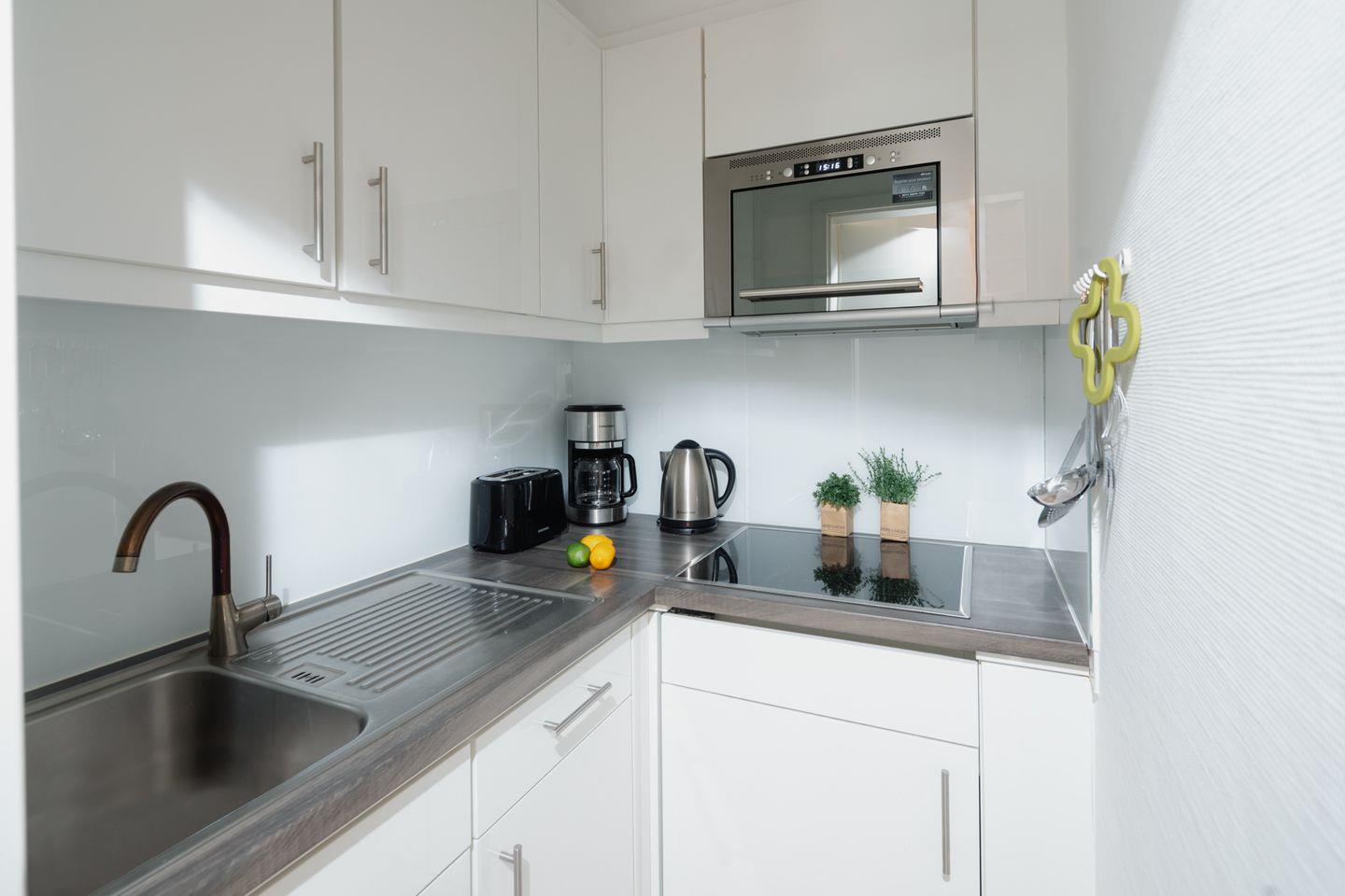 Die Wohnung wurde mit hellen und natürlichen Farben eingerichtet. Es wurde bei der Einrichtung auf einen modernen Stil Wert gelegt. Das Wohn-Schlafzimmer ist mit einem Boxspringbett ausgestattet. Eine separate kleine Küche ist voll eingerichtet und das Badezimmer verfügt über eine Dusche und einen Handtuchtrockner. Haustiere (Hunde) sind in dieser Ferienwohnung nicht erlaubt.