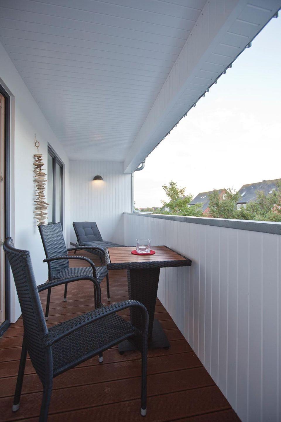 Moderne Ferienwohnung Dünenrose auf Norderney mit Balkon, Grillplatz, E-Bike-Ladestation und kostenfreiem Parkplatz.