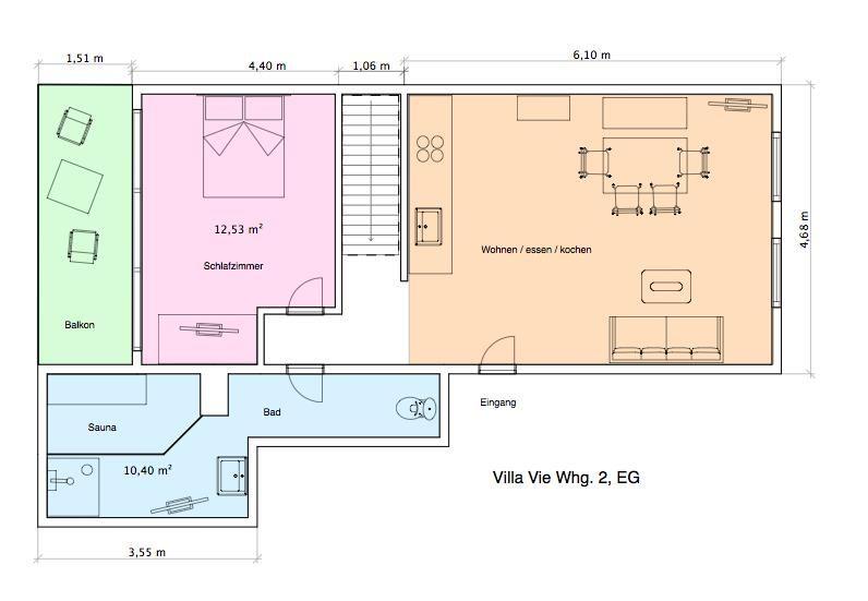 Die Ferienwohnung "Maison & Spa Nº 2" befindet sich in dem Haus "Villa Vie". Das Haus liegt in der Knyphausenstraße. Die "Maison & Spa Nº 2" erstreckt sich über zwei Etagen. Die Wohnung bietet mit ca. 130 Quadratmetern Platz für bis zu sechs Personen. Das macht sie ideal für Familien oder Gruppen von Freunden. Bis zum Strand sind es nur ca. 250m. Auch einige Restaurants, Cafés und andere Einkaufsmöglichkeiten sind nur wenige Gehminuten entfernt.