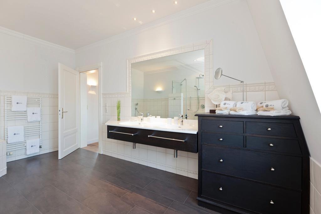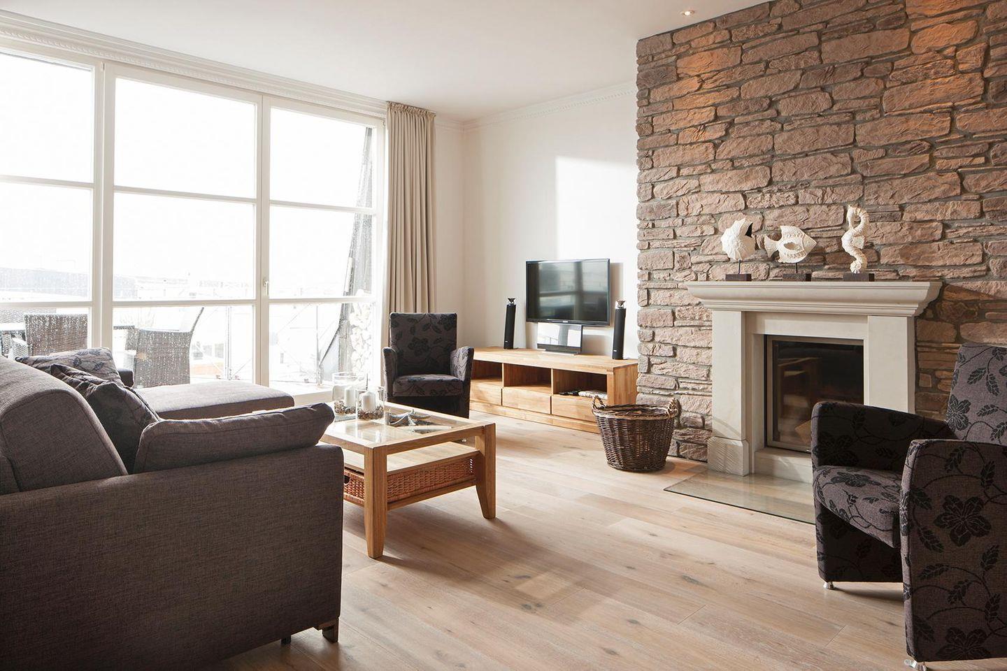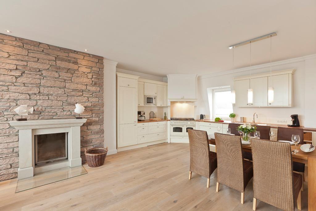Die Wohnung besticht durch ihre freundliche und designorientierte Einrichtung, jedes Detail wurde sorgfältig ausgewählt. Die Räume sind hell und offen gestaltet, mit hochwertigen Möbeln und modernen Annehmlichkeiten. Die Wohnung verfügt über zwei Schlafzimmer, beide sind mit einem Doppelbett ausgestattet. Das großzügige Badezimmer bietet eine Dusche (inklusive Regendusche) und eine Badewanne sowie zwei Waschbecken. Das Highlight der Luxus-Ferienwohnung ist zweifellos die Süd-Dachterrasse. Das Wohnzimmer ist mit einer Sitzecke (inklusive Schlafcouch) und einem Kamin ausgestattet. In dieser Wohnung fühlt sich auch der vierbeinige Freund wohl, denn die Ferienwohnung heißt auch Hunde herzlich willkommen. Erlaubt ist maximal 1 Hund (Höhe maximal kniehoch). Die Hundewiese befindet sich in der Nähe des Fährhafens (kein Leinenzwang).