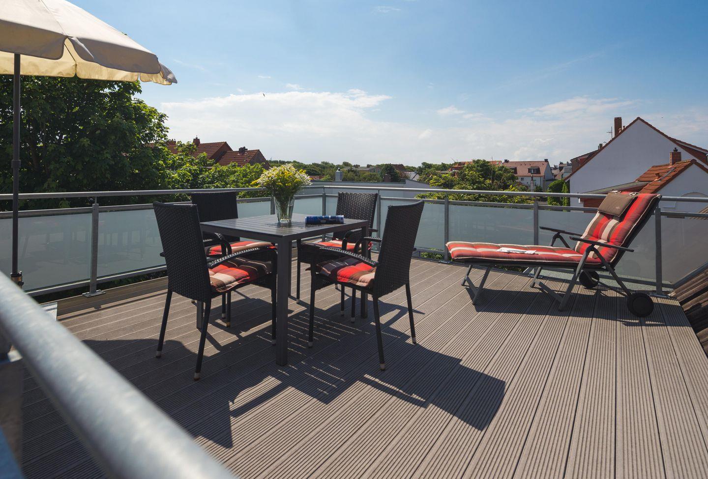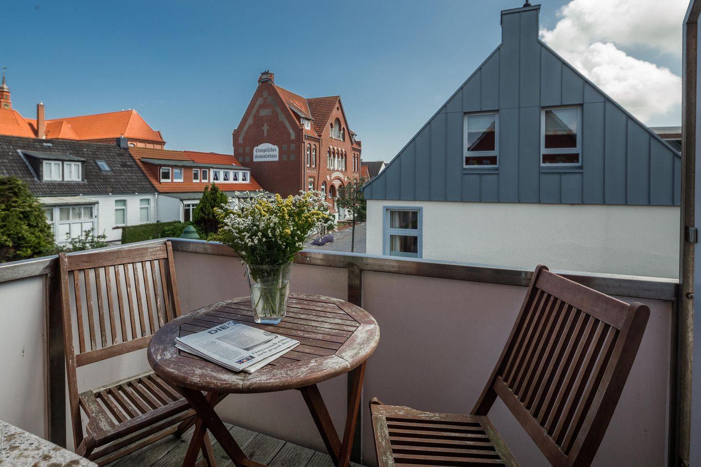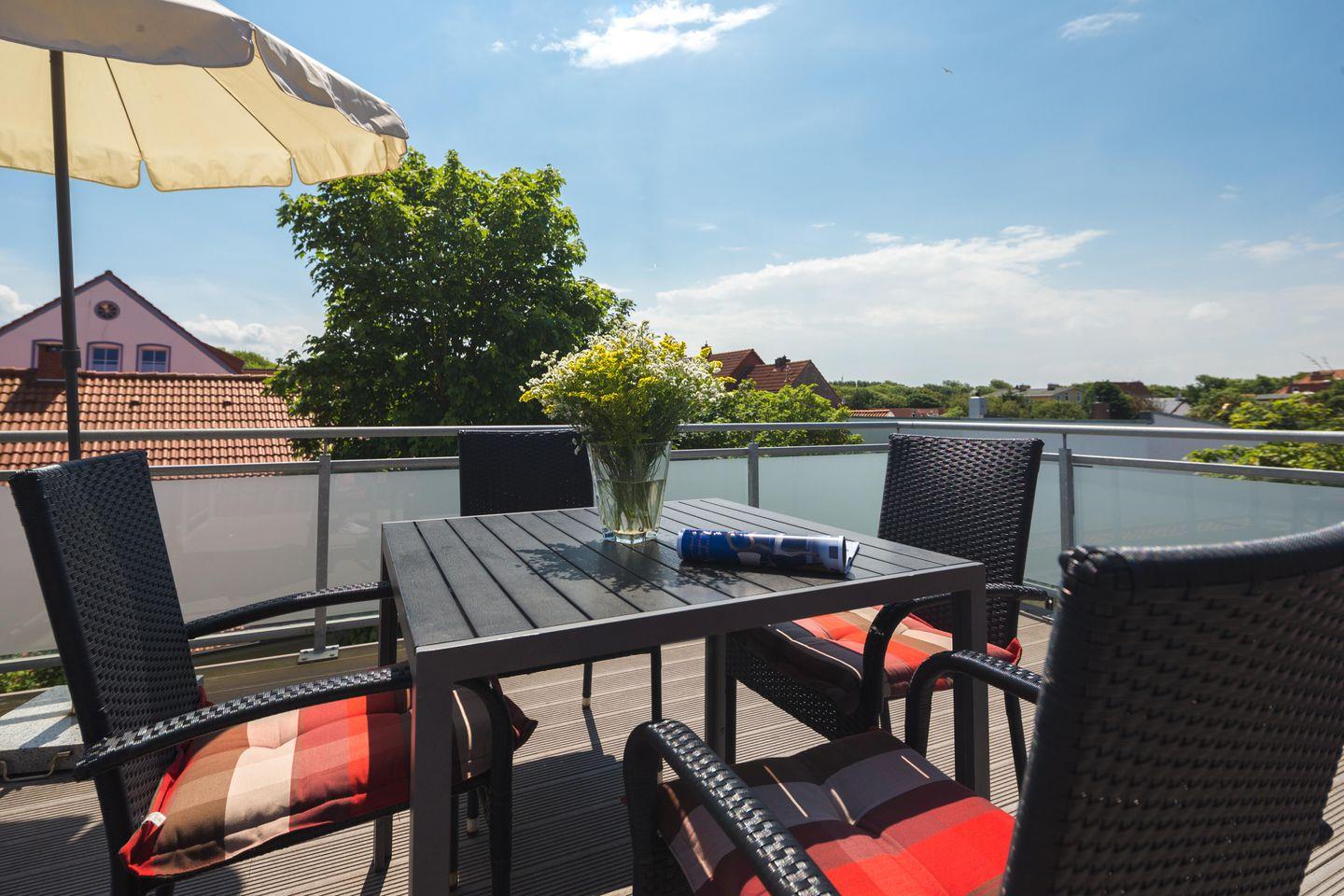 Moderne Ferienwohnung auf Norderney mit zwei Balkonen und Strandnähe, ideal für bis zu vier Personen.