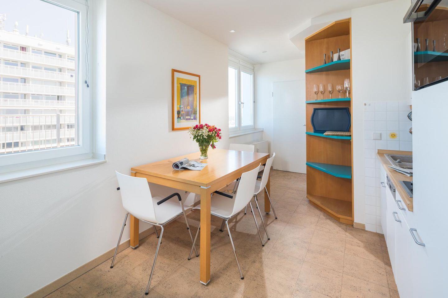 Die Ferienwohnung "Kaiserhof 96 (Penthouse)" befindet sich im Apartmenthaus "Kaiserhof", das an der Ecke Bismarckstraße und Kaiserstraße liegt. Das Haus liegt direkt am Meer, nur wenige Schritte vom Strand entfernt. Die Wohnung befindet sich im achten Stock und bietet Platz für bis zu 2 Personen. Im Haus gibt es einen Fahrstuhl.
