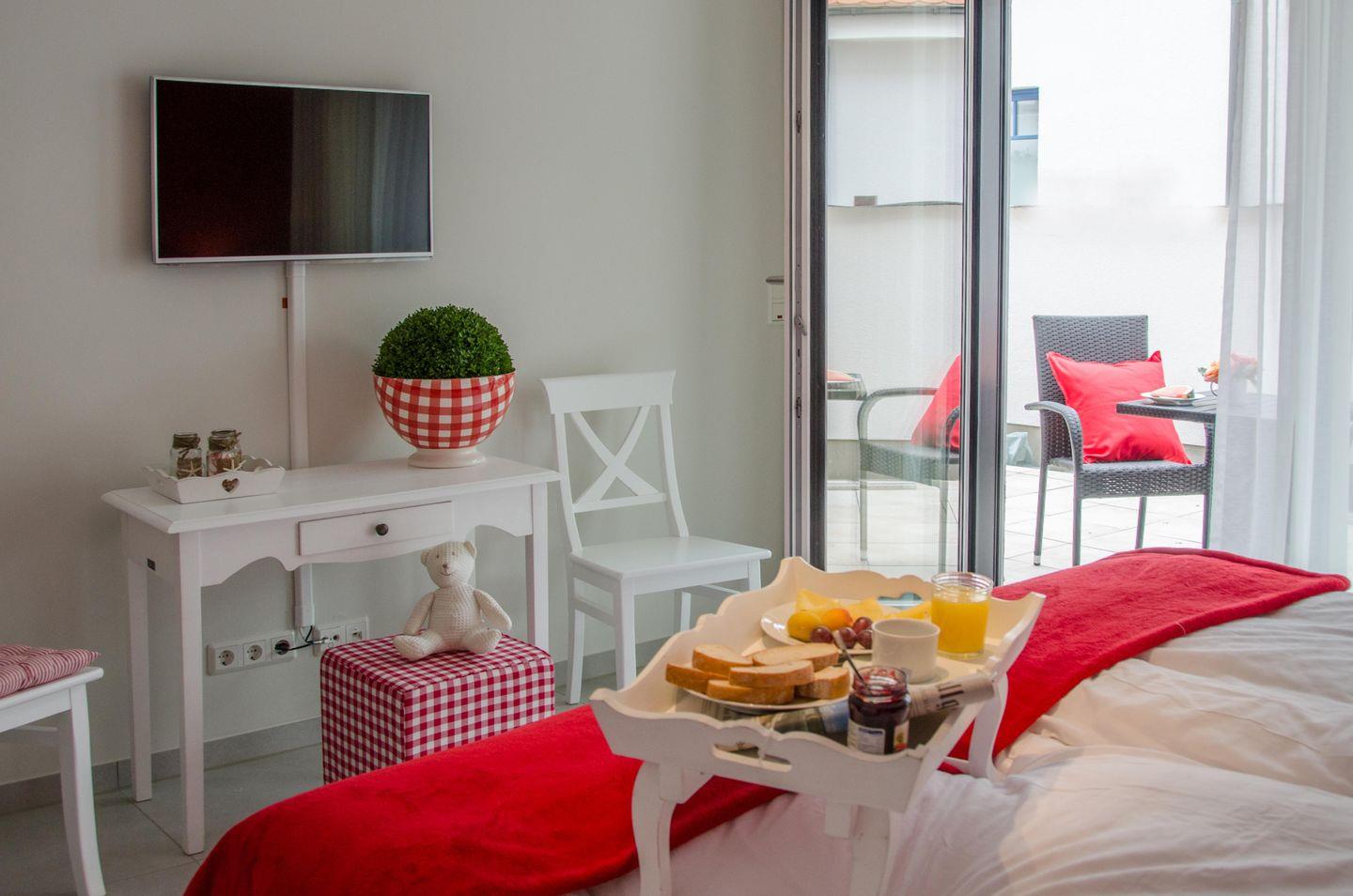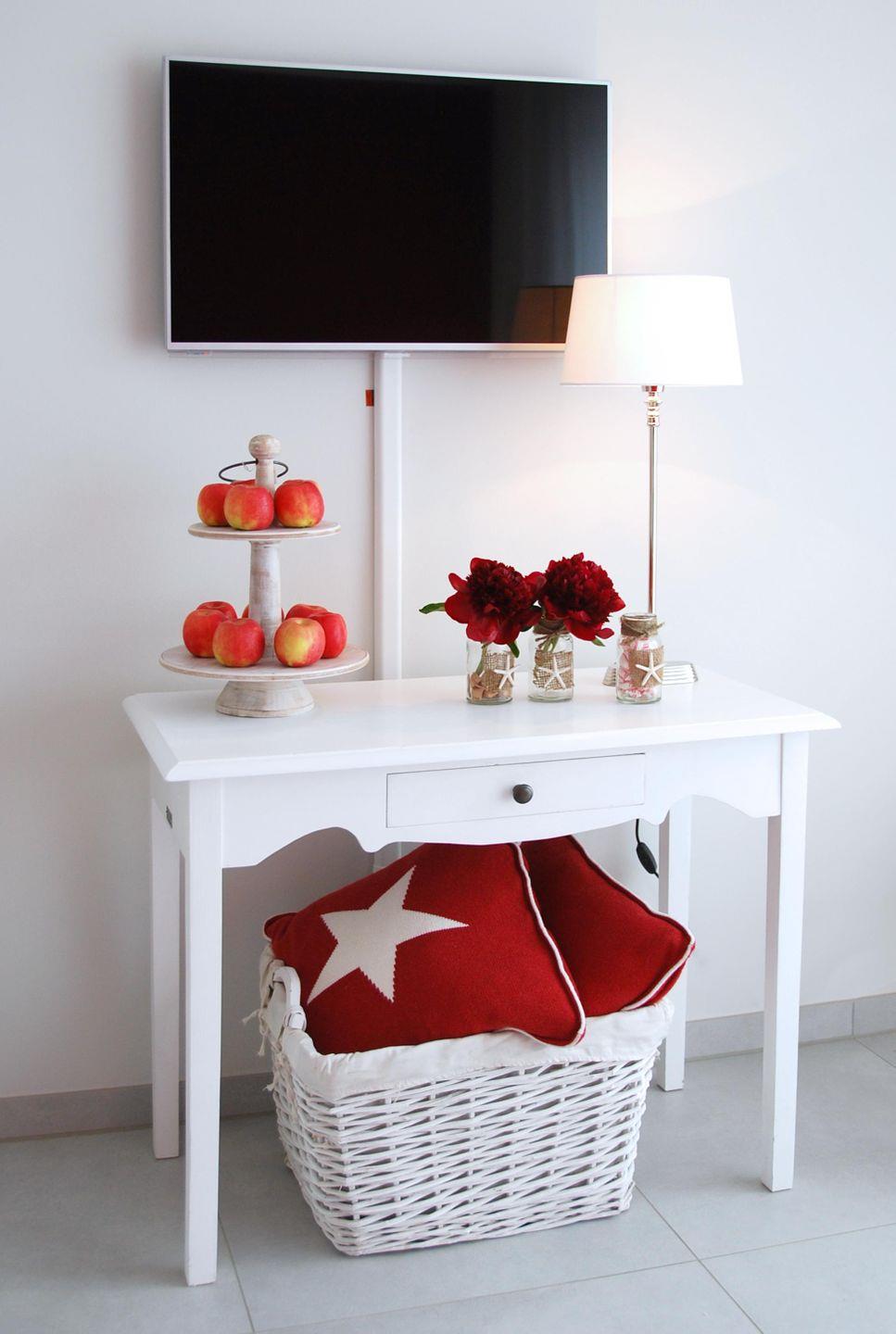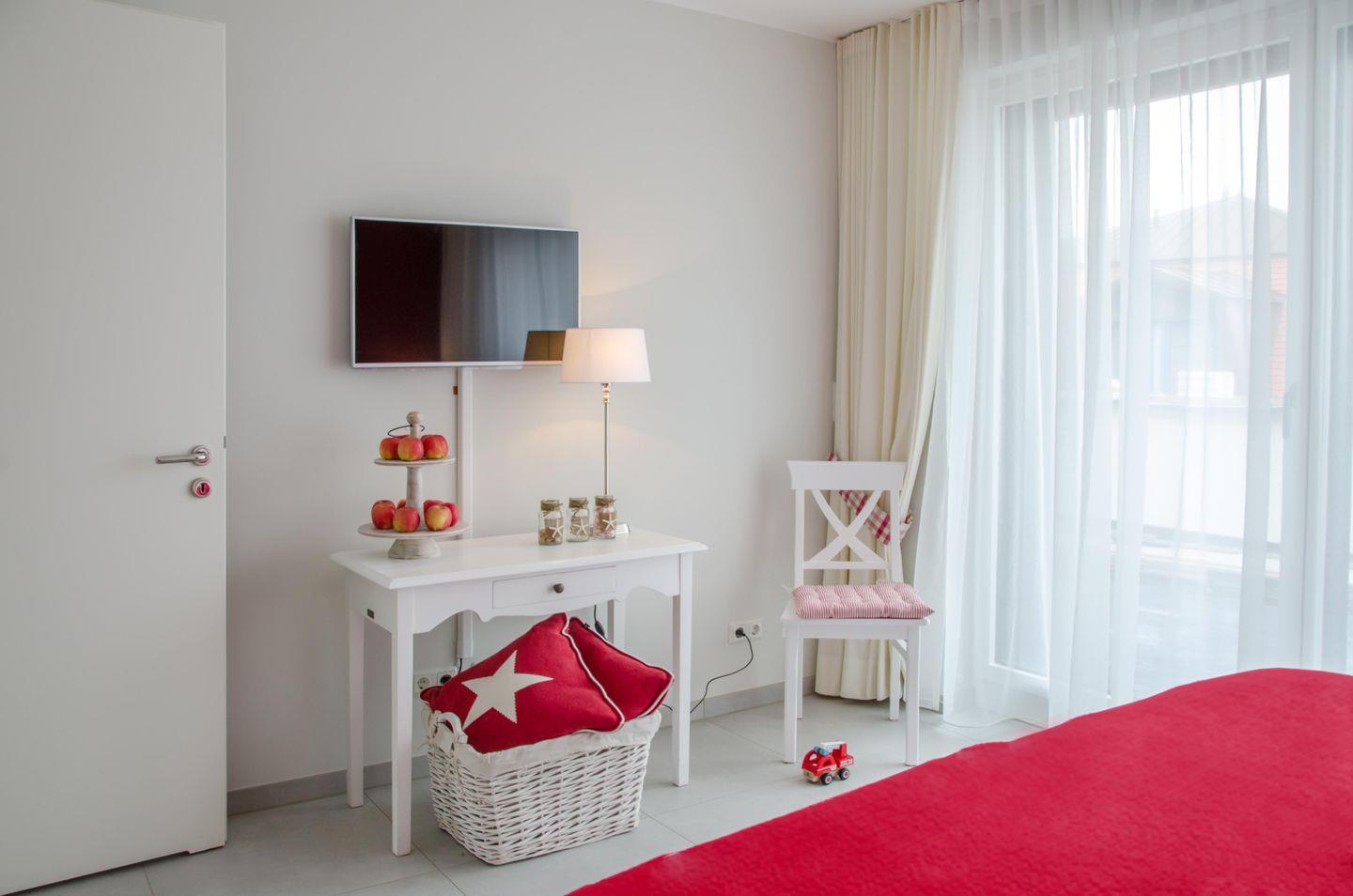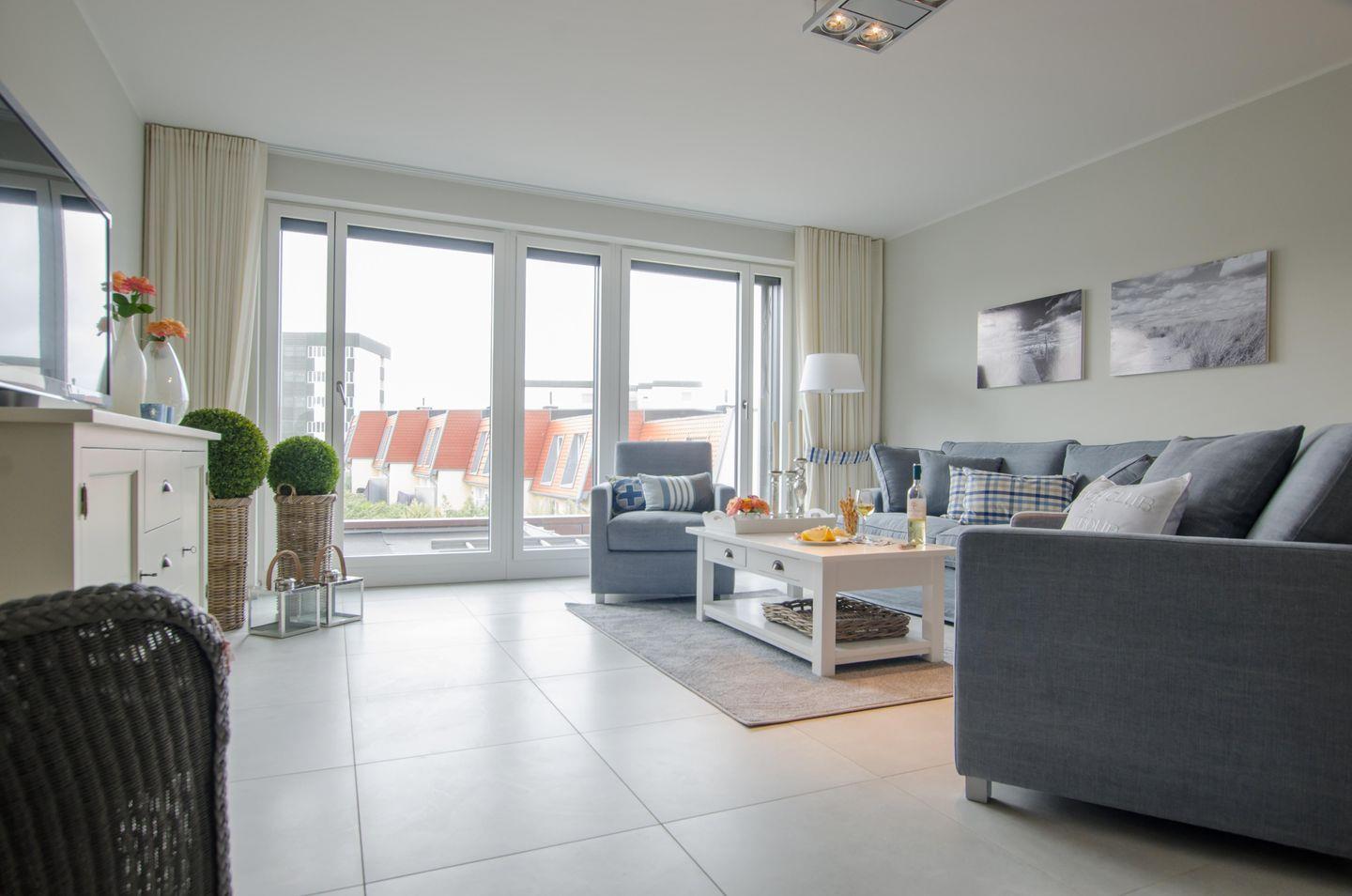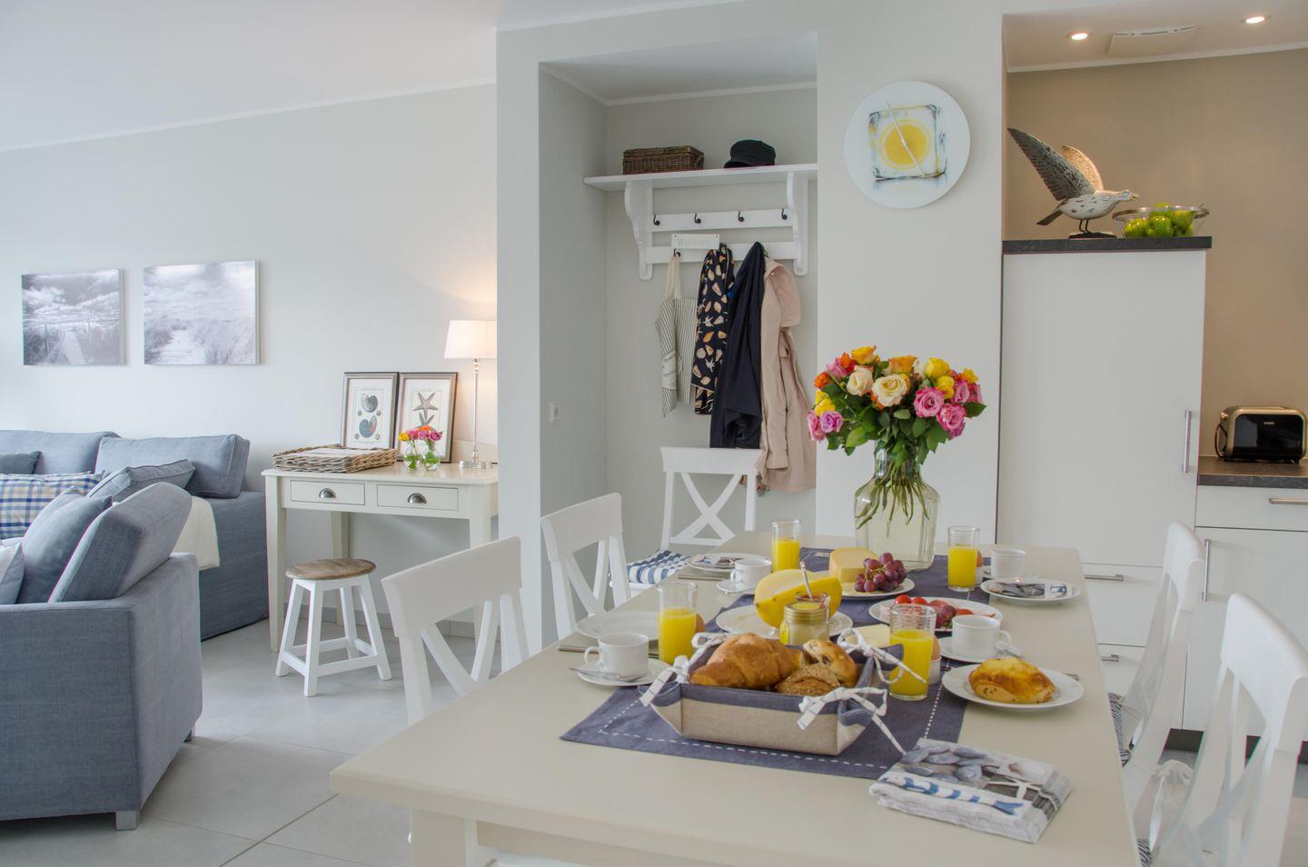 Die Wohnung bietet auf einer Wohnfläche von 79qm, ergänzt durch zwei Balkone (insgesamt 17,5qm), ausreichend Platz für 4 Personen. Bei der Inneneinrichtung wurde auf helle Farben und natürliche Materialien Wert gelegt. Die Wohnung verfügt über zwei Schlafzimmer (jeweils mit einem Doppelbett eingerichtet), ein Wohnzimmer mit offener Küche und einem Essbereich sowie ein Badezimmer mit einer Dusche, WC und zwei Handwaschbecken. Eine Waschmaschine und ein Wäschetrockner stehen (für die gemeinschaftliche Nutzung) gegen Münzeinwurf zur Verfügung. Fahrräder können im Keller abgestellt werden. Hunde sind in dieser Ferienwohnung nicht erlaubt.