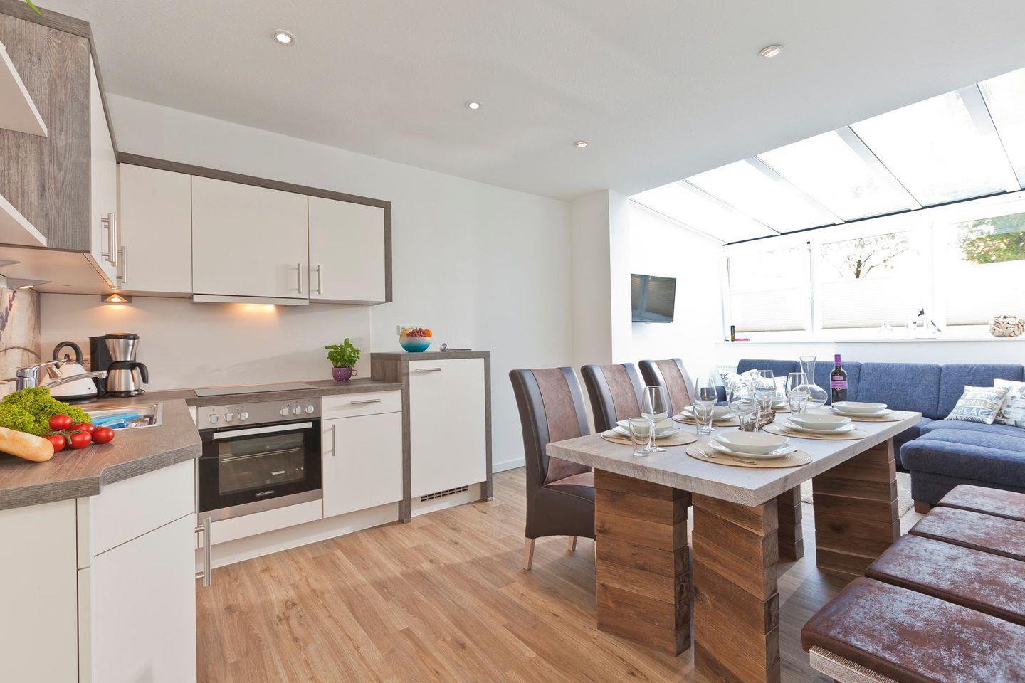 Sollte der Platz in der Wohnung "Lee" nicht ausreichen, besteht die Möglichkeit, auch die im ersten Stock gelegene Wohnung "Luv" dazuzubuchen. Dadurch kann Platz für weitere vier Personen geschaffen werden, was die Flexibilität der Unterkunft noch erhöht.