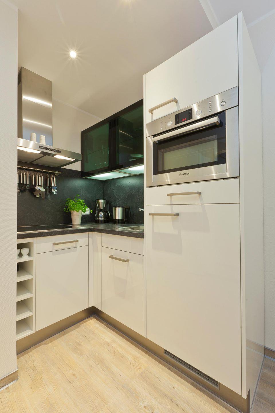 Die Wohnung verfügt über ein kombiniertes Wohn- und Schlafzimmer mit einem Doppelbett. Die Küchenzeile ist mit allen notwendigen Geräten und Utensilien ausgestattet. Das Badezimmer ist modern gestaltet und verfügt über eine Dusche und ein WC. Ein Highlight der Wohnung ist der 9 Quadratmeter große Balkon. Waschmaschine und Wäschetrockner befinden sich im Haus und stehen (für die gemeinschaftliche Nutzung gegen Münzeinwurf) zur Verfügung, was besonders für längere Aufenthalte von Vorteil ist. Hunde sind in dieser Ferienwohnung nicht erlaubt.
