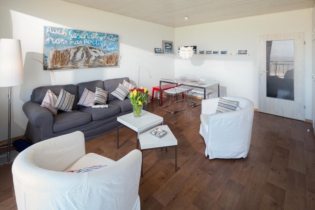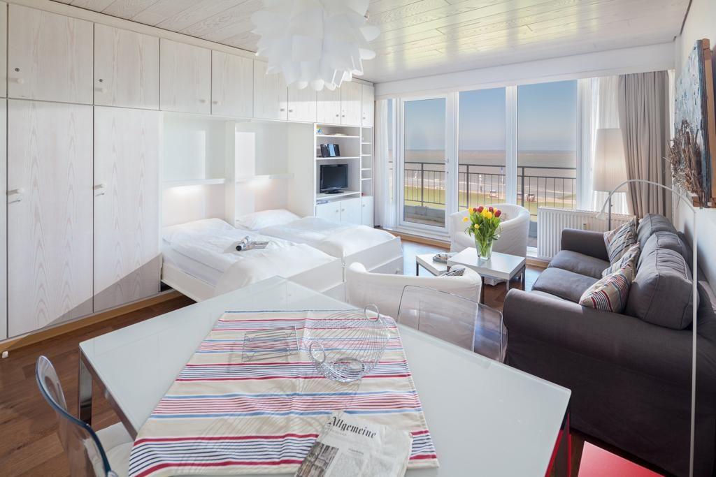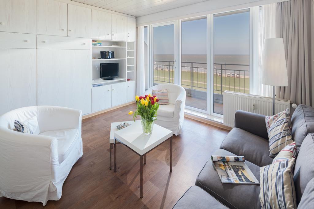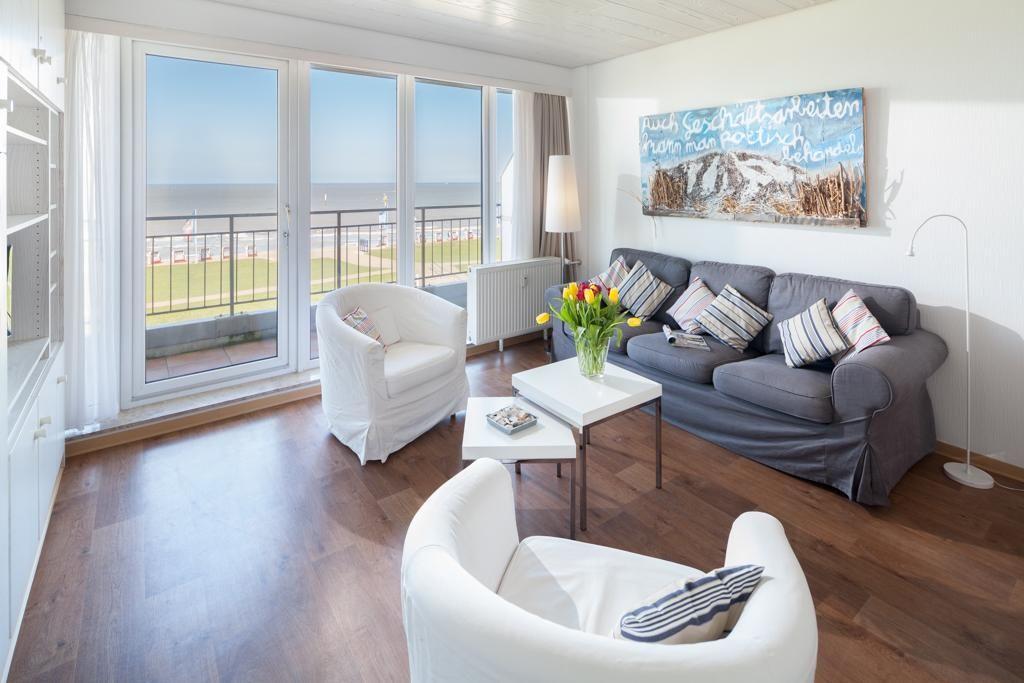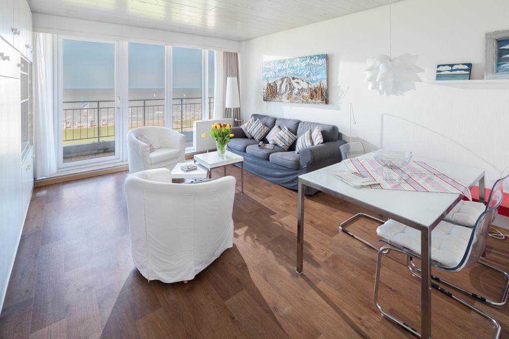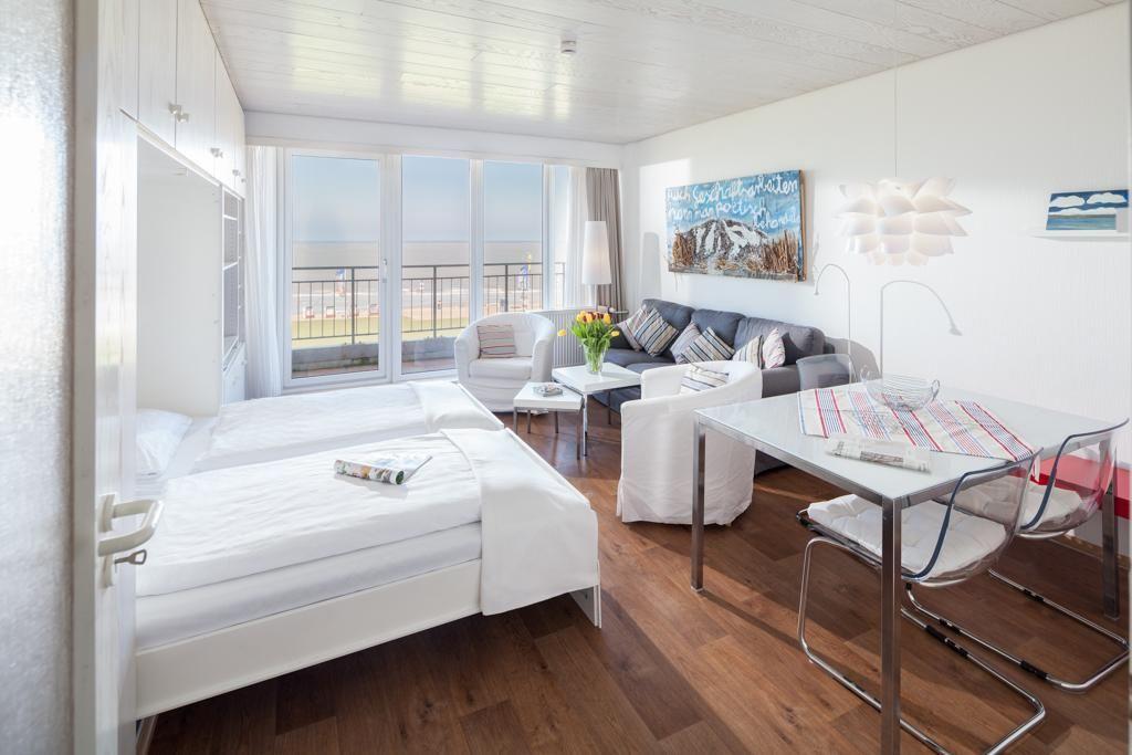 Moderne Ferienwohnung Kaiserhof 33 direkt am Meer mit Balkon und Sauna, ideal für entspannte Tage am Strand.