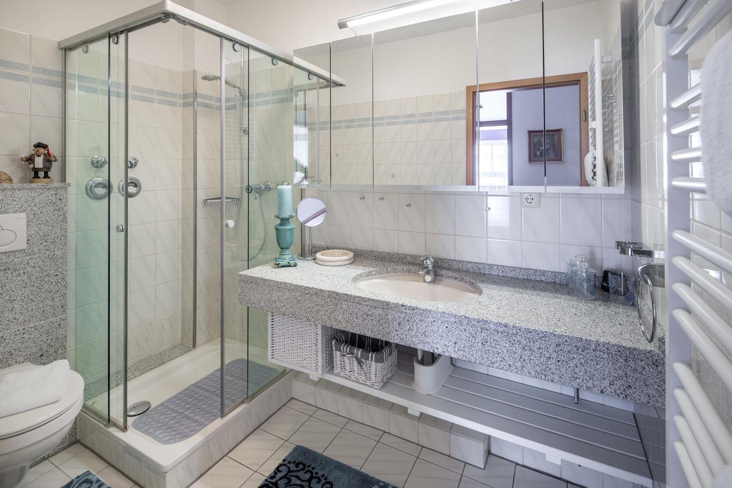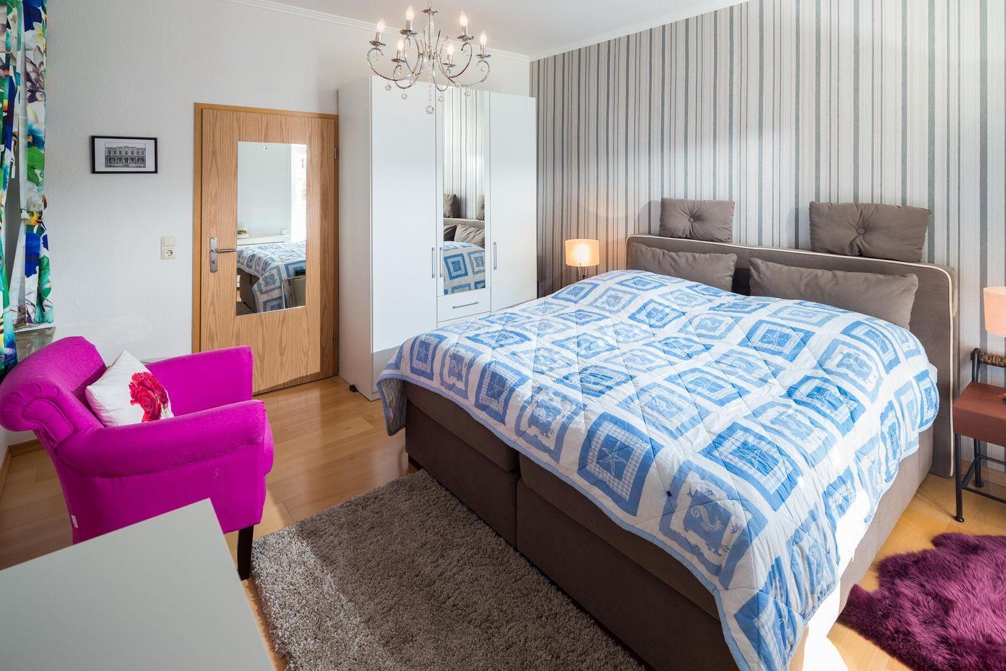 Die Wohnung verfügt über 2 Schlafzimmer. in einem der Schlafzimmer befindet sich ein Doppelbett, während im zweiten Schlafzimmer eine Schlafcouch zur Verfügung steht und es über ein eigenes Badezimmer verfügt. Für Familien oder Gruppen von Freunden bietet das zweite Schlafzimmer mit der Ausziehcouch Platz für weitere zwei Personen. Insgesamt finden bis zu 4 Personen in dieser Wohnung Platz. Die Wohnung wurde mit einem kleinen Balkon ausgestattet, ca. 2qm. Waschmaschine und Wäschetrockner befinden sich im Haus und stehen (für die gemeinschaftliche Nutzung gegen Gebühr) zur Verfügung.
