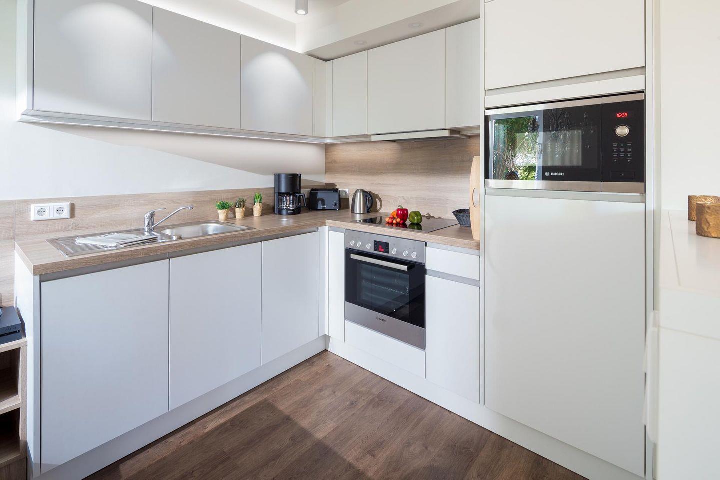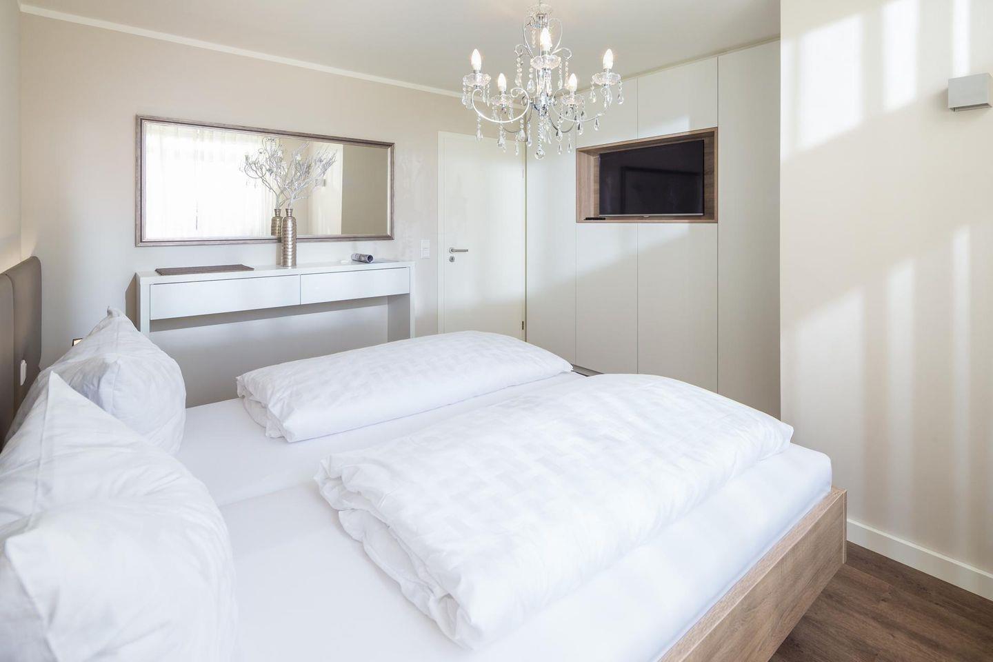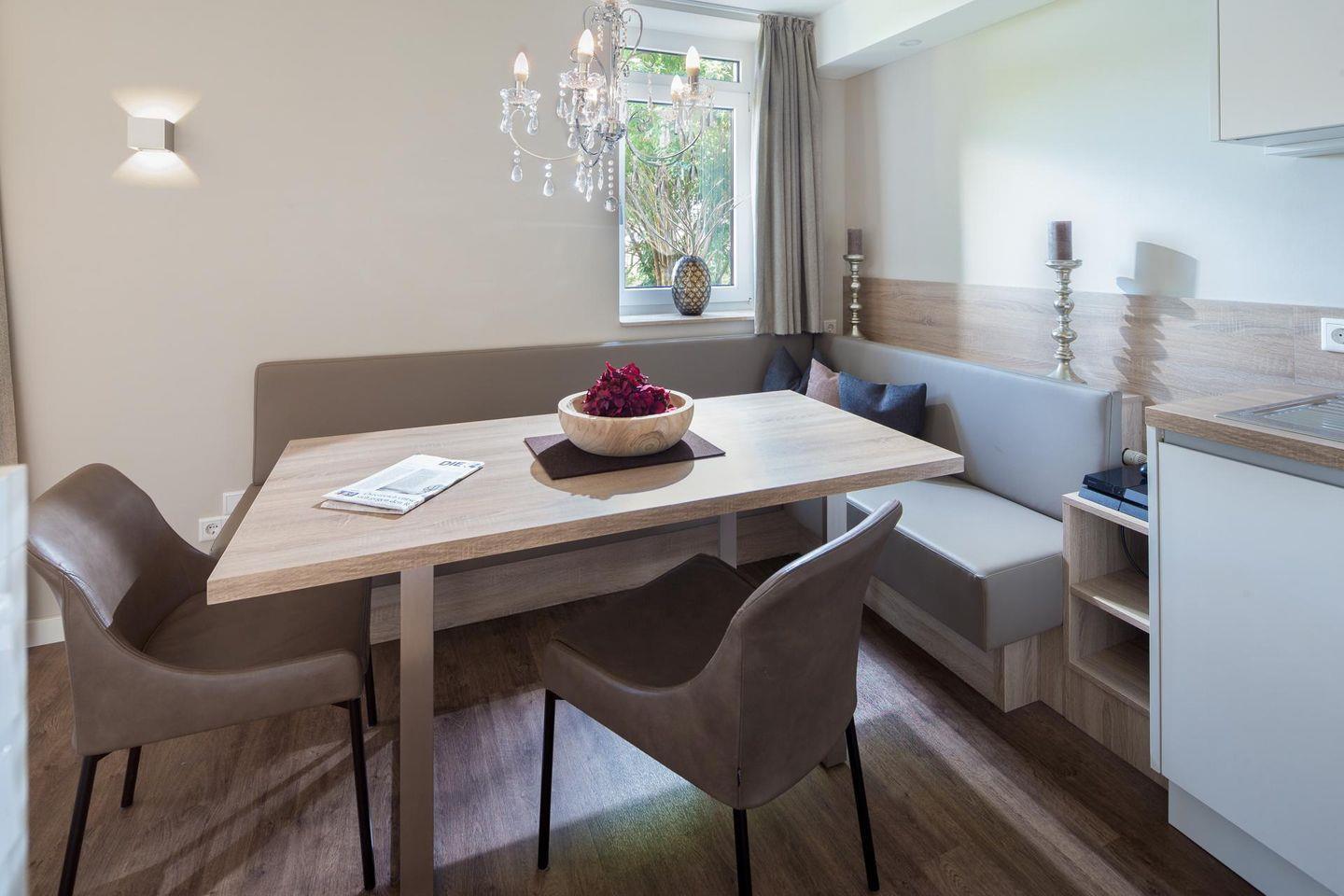 Die Wohnung verfügt über ein Schlafzimmer. Dieses ist mit einem Doppelbett ausgestattet und im Wohnbereich befindet sich eine Schlafcouch, die Platz für bis zu zwei weitere Personen bietet. Die Küche ist modern und voll ausgestattet. Der Wohn- und Essbereich ist in natürlichen Farben gehalten. Für Unterhaltung sorgt eine Sony Playstation PS 4. Das besondere Highlight der Ferienwohnung "Wattwunder" ist zweifellos die ca. 20 qm große Terrasse. Eine Waschmaschine befindet sich im Haus und steht zur Verfügung, was besonders für längere Aufenthalte von Vorteil ist. Fahrräder können vor dem Haus abgestellt werden. Haustiere (Hunde) sind in dieser Ferienwohnung nicht erlaubt.