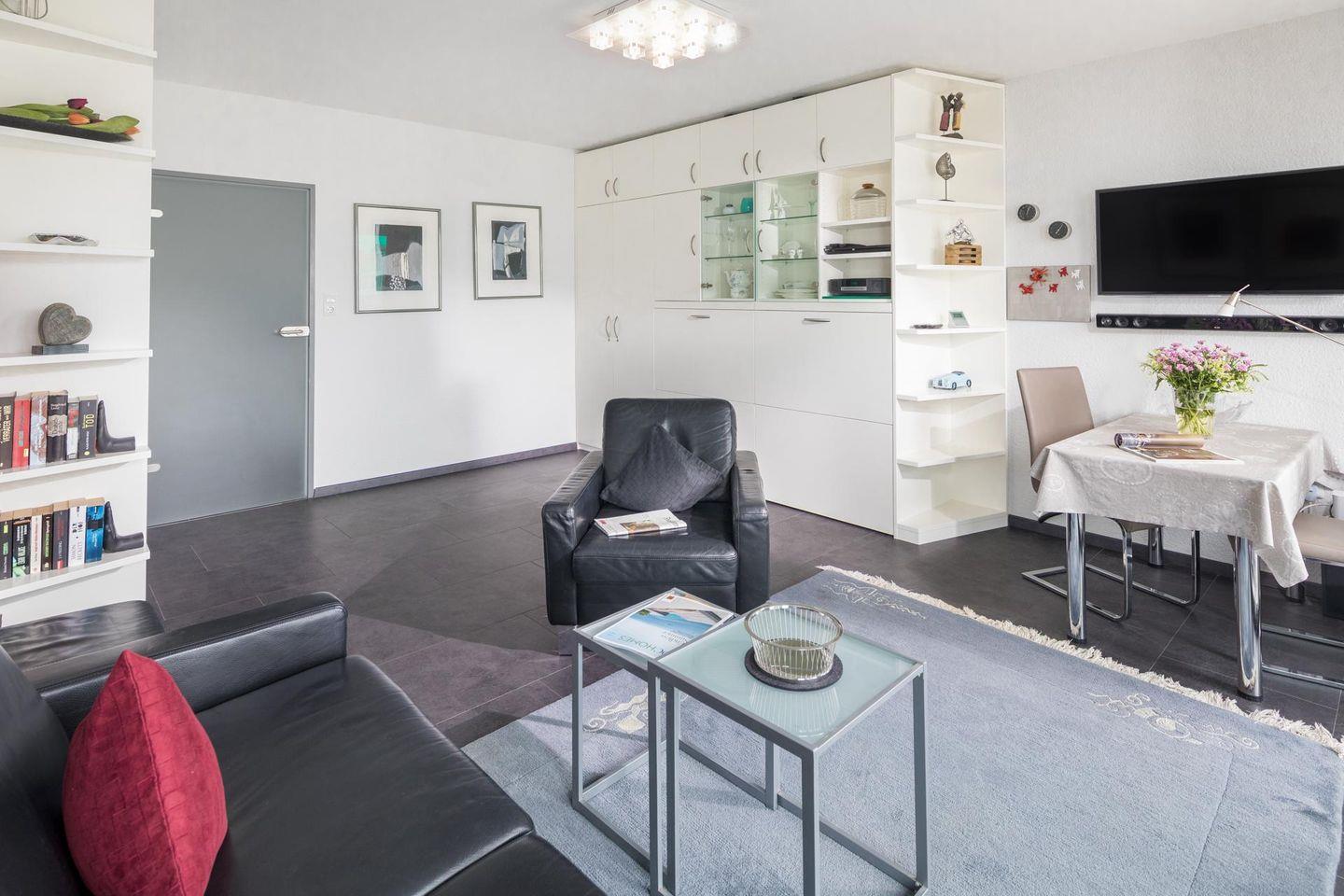 Die Wohnung ist mit einem Schrankbett (Doppelbett) ausgestattet. Das Schrankbett, das sich tagsüber unauffällig verstauen lässt, sorgt für genug Bewegungsfreiheit innerhalb der Wohnung. Der Vorraum, der auch als Flur und Küche dient, wurde mit einer vollwertigen Einbauküche (inklusive Spülmaschine) ausgestattet. Das Badezimmer der Wohnung ist mit einer Dusche, einem WC und einem Handwaschbecken ausgestattet. Die Wohnung ist südlich ausgerichtet und verfügt über einen Balkon. Im Apartmenthaus "Kaiserhof" stehen den Bewohnern eine Waschmaschine und ein Wäschetrockner (beide mit Münzeinwurf) zur Verfügung. Zusätzlich steht eine Sauna bereit, die ebenfalls gegen Münzeinwurf nutzbar ist. Es ist zu beachten, dass das Schwimmbad aufgrund eines technischen Defektes geschlossen ist. Fahrräder können vor dem Haus (Nordseite) oder im Fahrradraum abgestellt werden. Hunde sind in dieser Wohnung nicht erlaubt.