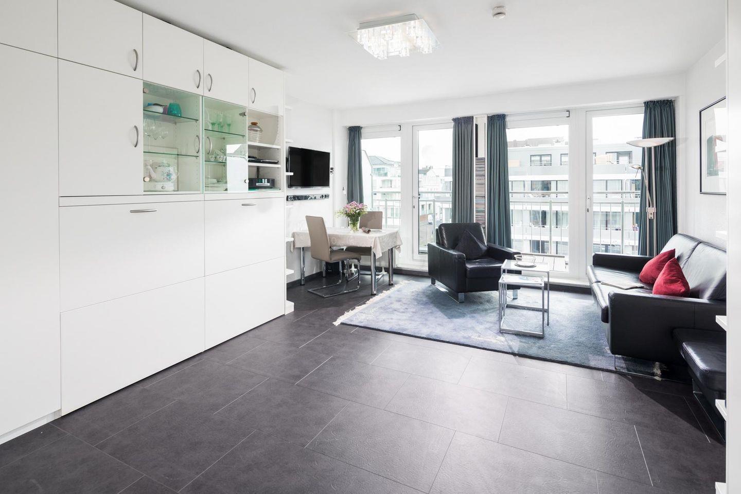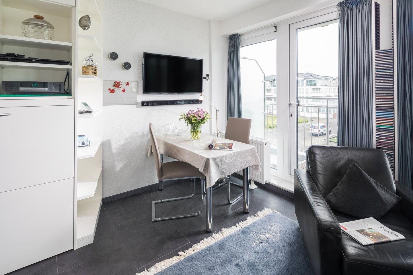 Die Ferienwohnung Kaiserhof 11 in Norderney bietet Meerblick, Balkon, Sauna und moderne Ausstattung nur 85 m vom Strand entfernt.