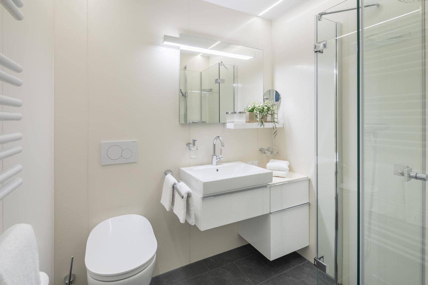 Die Wohnung ist mit einem separaten Schlafzimmer (Doppelbett) ausgestattet. Im Wohnzimmer wurde die Küchenzeile integriert. Das Badezimmer ist mit einer ebenerdigen Dusche und einem Handtuchtrockner ausgestattet. Ein zusätzliches drittes Bett befindet sich im Schrank im Flur, was die Wohnung ideal für kleine Familien oder Gruppen macht. Die Wohnung bietet einen Balkon. Die Wohnung wird seit dem 01.01.2023 ohne Parkplatz angeboten. Waschmaschine und Wäschetrockner befinden sich im Haus und stehen (für die gemeinschaftliche Nutzung gegen Münzeinwurf) zur Verfügung, was besonders für längere Aufenthalte von Vorteil ist. Hunde sind in dieser Wohnung nicht erlaubt.