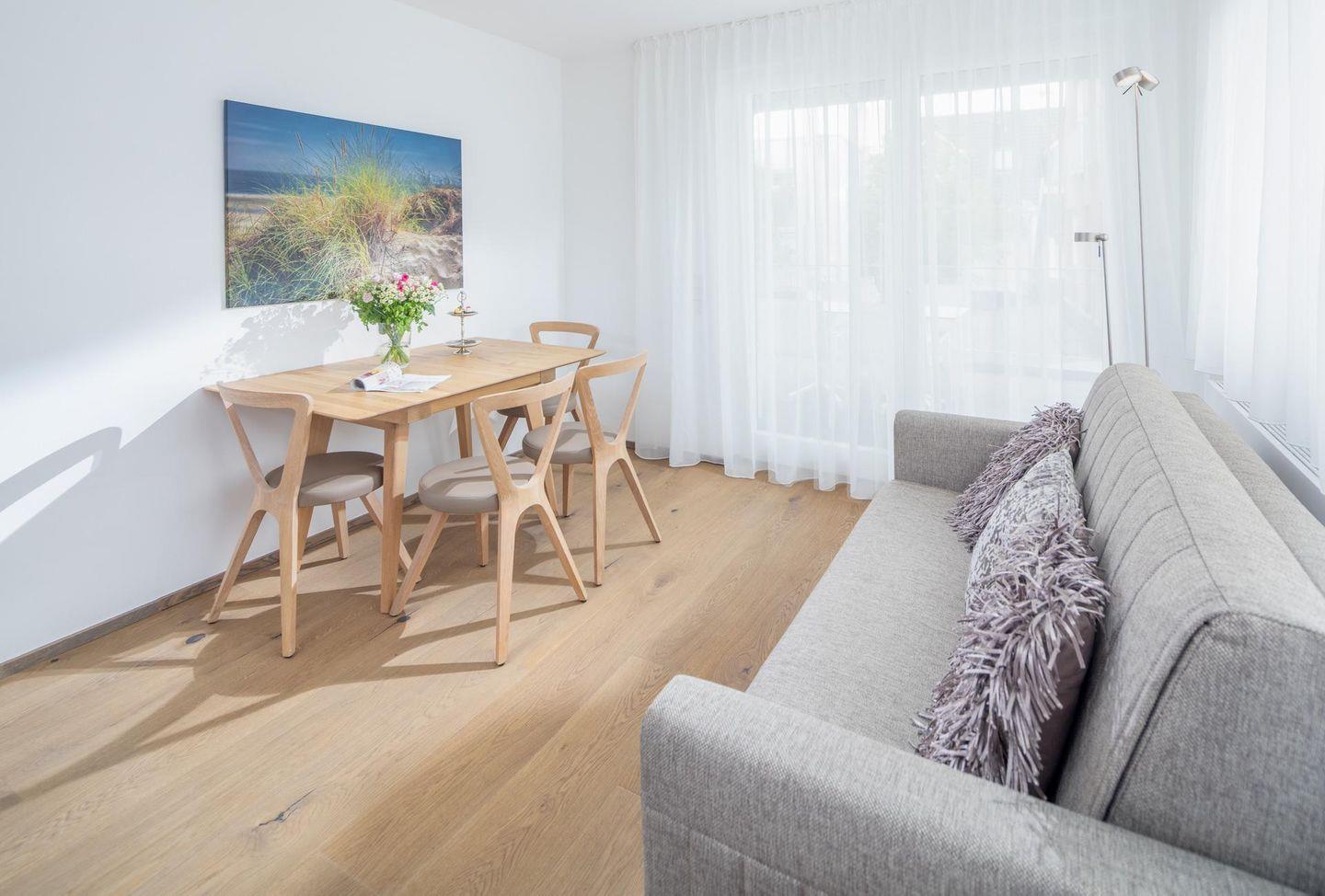 Moderne Ferienwohnung mit nordischer Atmosphäre im Zentrum von Norderney, nur 280 m vom Strand entfernt.