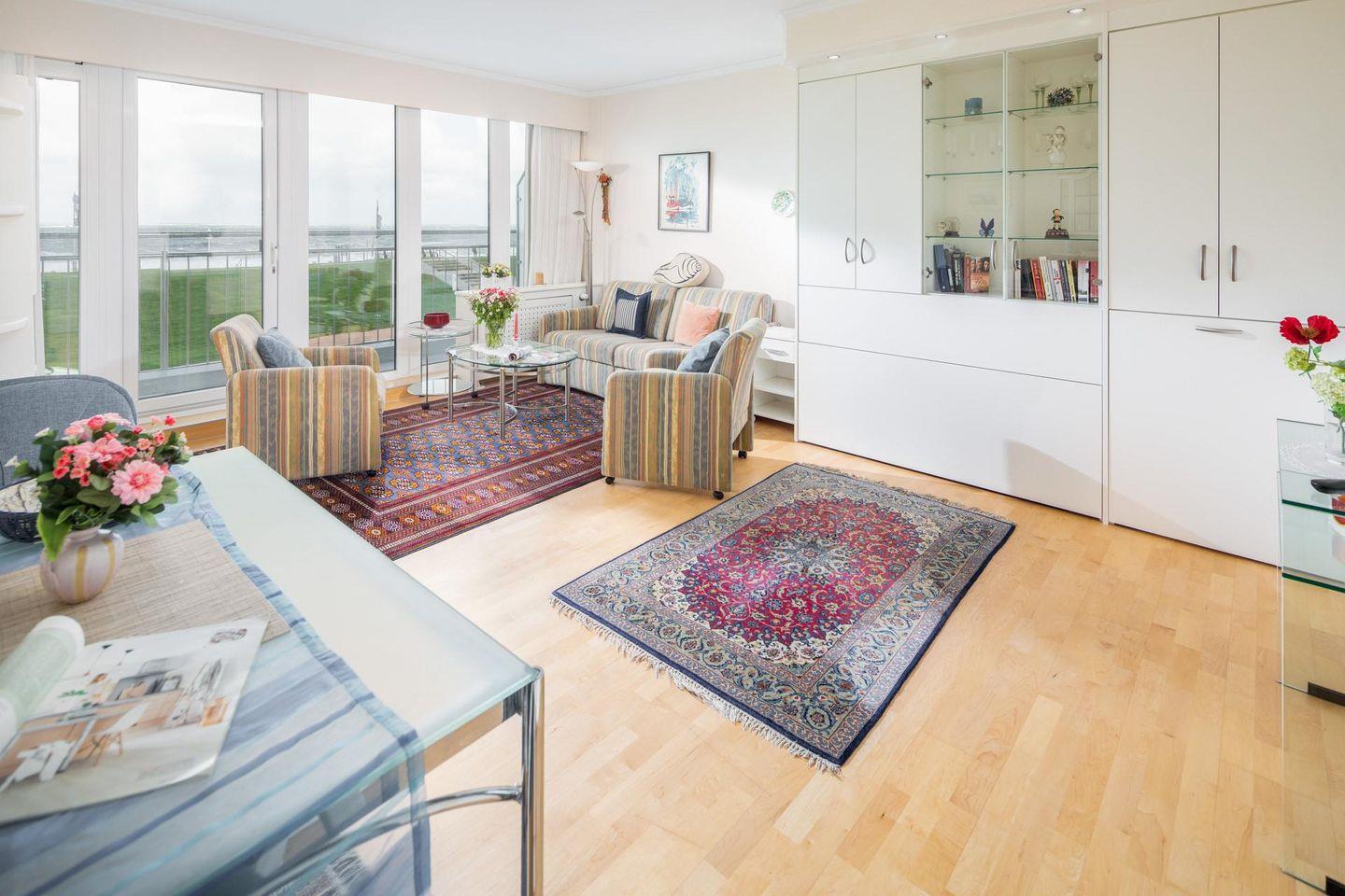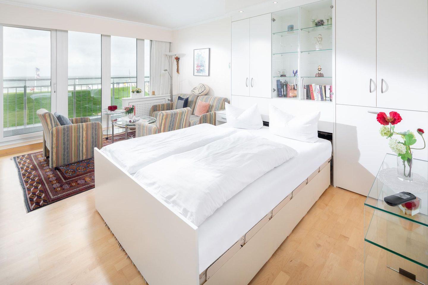 Moderne Ferienwohnung Kaiserhof 05 mit Meerblick auf Norderney, Balkon, Sauna und WLAN, nur 85 m vom Strand entfernt.