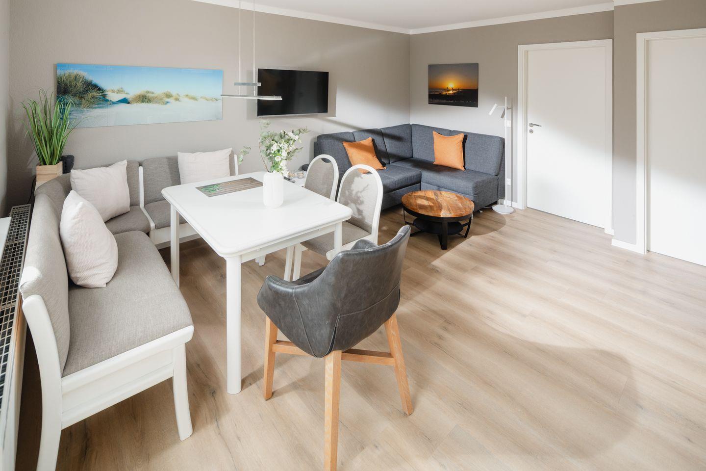 Die Ferienwohnung Goode Wind bietet eine zentrale Lage, gemütliche Ausstattung und eine große Dachterrasse auf Norderney.