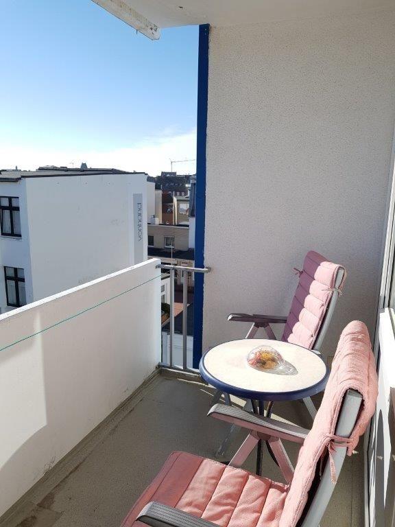 Zentral gelegenes 2-Raum-Appartement auf Norderney mit Balkon, Aufzug und eigenem Schwimmbad für entspannte Ferien.