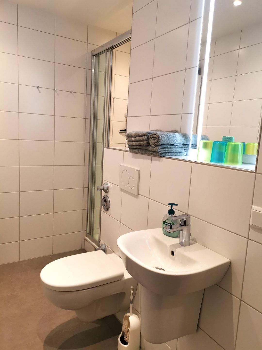 Das 35qm große Appartement in zentraler Lage befindet sich im 2. OG. Es verfügt über ein separates Schlafzimmer mit Einzelbett sowie Schrankbett (Einzelbett), Wohn-/Schlafraum mit Schlafsofa, Küchenzeile und Badezimmer mit Dusche/ WC. Vom Wohnraum haben Sie Zugang zu einem Balkon. WLAN. NICHTRAUCHERWOHNUNG.