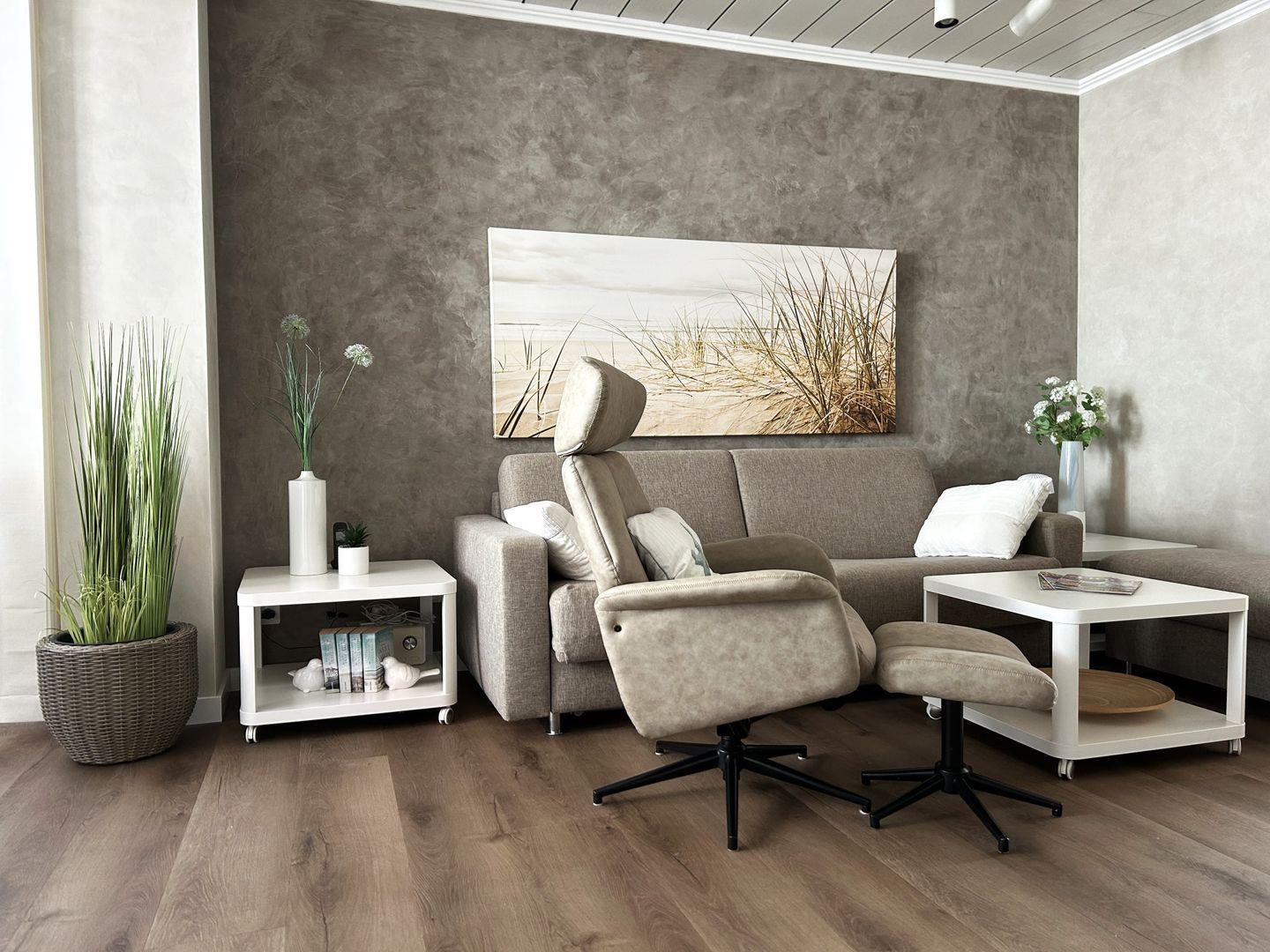 Die ca. 65 m² große Wohnung im Erdgeschoss verfügt über einen Wohnraum (TV) und einer gemütlichen Sitzecke, einer separaten Küche mit Küchenzeile