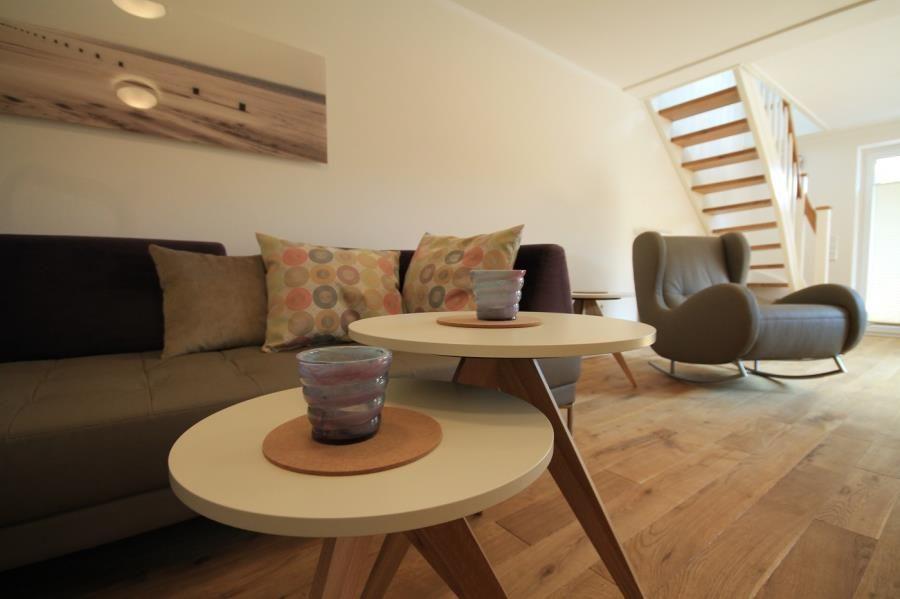 Exklusive, große Ferienwohnung über zwei Etagen. Im Erdgeschoss befindet sich eine Küche mit Essplatz, Kamin, TV und Zugang zum Balkon. Ein Schlafzimmer mit Doppelbett und TV sowie ein Bad mit Dusche/ WC sind vorhanden. Im Untergeschoss befindet sich ein Wohnraum (TV) mit direktem Zugang zur Terrasse sowie zwei Schlafzimmer mit jeweils einem Doppelbett und TV. Dusche/ WC. Das Ferienhaus besticht durch seine idyllische Dünenlage! Ein Parkplatz ist inklusive.